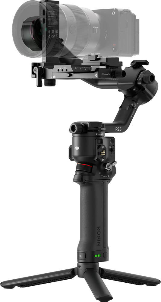 DJI RS 5 ima odabir objekta na zaslonu osjetljivom na dodir s novim modulom za praćenje, glatko balansiranje pomoću gumba za fino podešavanje i izravno upravljanje putem nove ručke u obliku aktovke - sve to uz brže punjenje i dulji vijek trajanja baterije. Uključuje BG33 držač baterije, gornju i donju RS 5 ploču za brzo otpuštanje, nosač za pričvršćivanje objektiva, brzootvarajući tronožac i još mnogo toga.