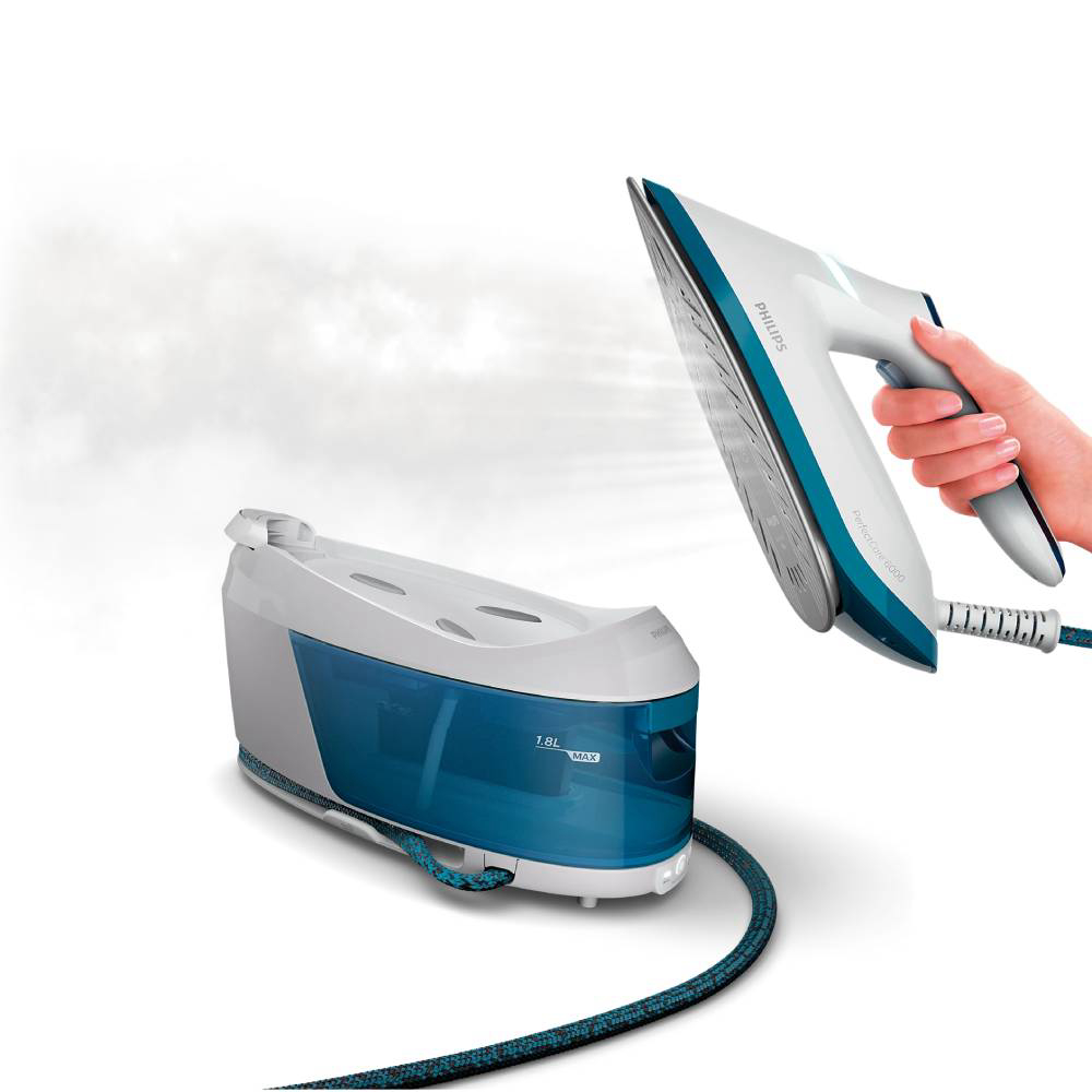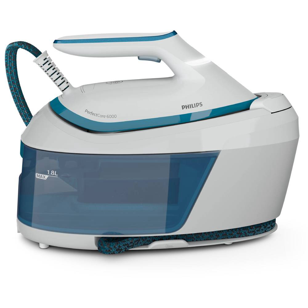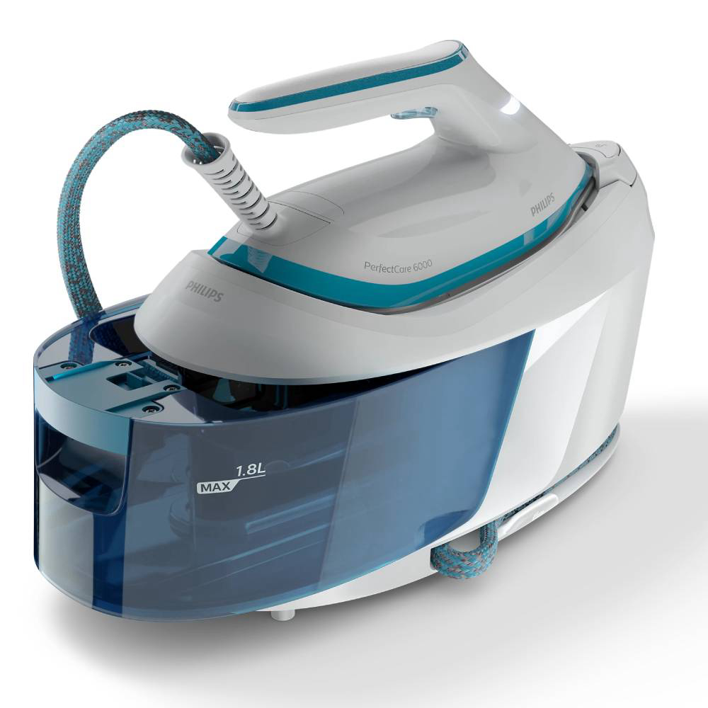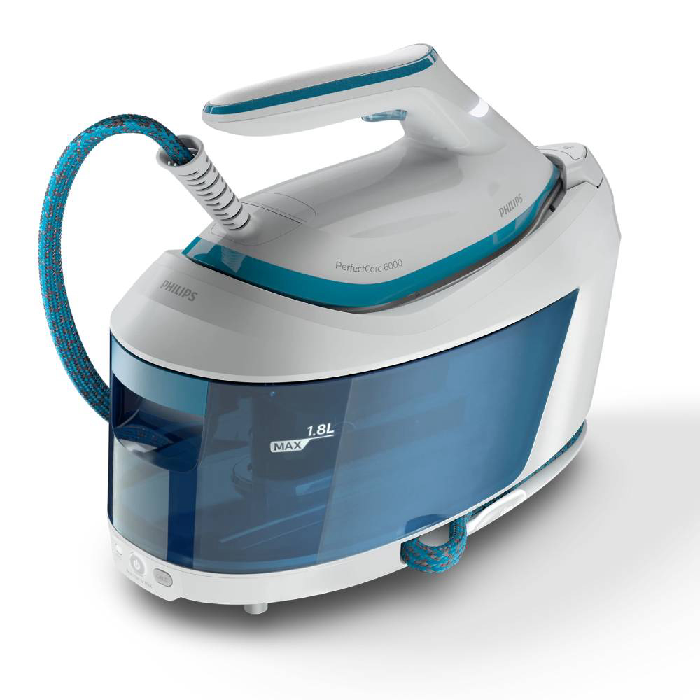 Serija PerfectCare 6000 nudi izvrsne performanse parnog glačanja u potpuno obnovljenom, kompaktnom dizajnu. Tehnologija OptimalTEMP omogućuje odlične rezultate uz jednu idealnu postavku temperature. Jamčimo da ovo glačalo nikad neće uzrokovati progorijevanje nijedne tkanine kad se ostavi bez nadzora. Snažna kontinuirana para učinkovito uklanja najtvrdokornije nabore na najdebljim tkaninama. Zahvaljujući ProVelocity tehnologiji ova parna postaja je lagana i jednostavna za rukovanje zadržavajući kompaktne dimenzije. Prozirni spremnik od 1,8 l pruža vam do 1,5 sati kontinuirane uporabe. Sigurno fiksirajte glačalo na postaji kako biste ga lako nosili po kući i smanjili rizik od slučajnog dodirivanja vruće grijaće ploče.