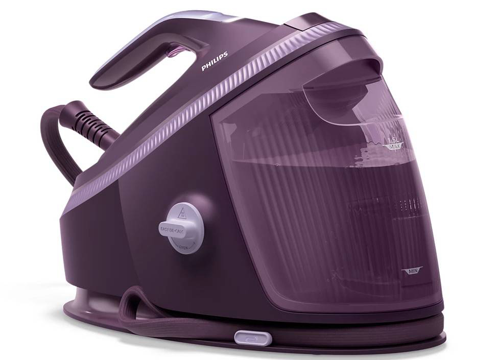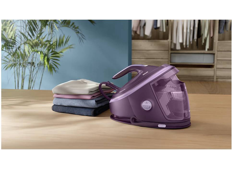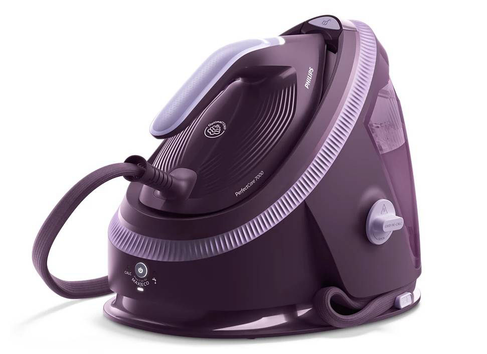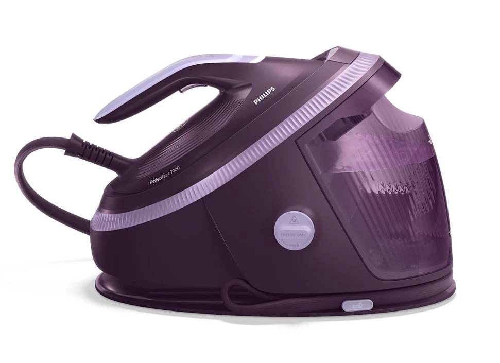 Nova serija PerfectCare 7000 dizajnirana je za udobnost i praktičnost. Lagano glačalo jednostavno za rukovanje pruža snažnu paru za brzo postizanje odličnih rezultata. Tehnologija OptimalTEMP jamči da neće biti progorijevanja na svim tkaninama koje se mogu glačati. Do sat vremena neometanog glačanja zahvaljujući velikom spremniku za vodu od 1,5 l. Kad se spremnik za vodu isprazni, zvučni i svjetlosni indikatori podsjetit će vas na ponovno punjenje, jednostavno vodom iz slavine kroz veliki otvor za punjenje. Redovitim čišćenjem kamenca štitite glačalo, produžujete njegovo trajanje i osiguravate najbolje radne značajke parnog glačanja. Ekskluzivni sustav Easy De-Calc kontinuirano prikuplja kamenac, a ima i indikator koji vam daje do znanja kad je vrijeme za pražnjenje. Jednostavno izvucite čep kako biste ispustili vodu i čestice kamenca. Isprepleteni niti crijeva parne postaje čine ga izuzetno snažnim, tako da možete uživati u svojoj parnoj postaji bez brige o trošenju i habanju crijeva.