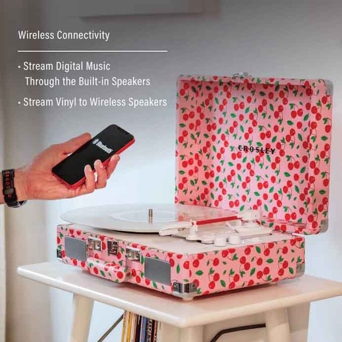 CROSLEY Cruiser Plus je prijenosni gramofon koji spaja retro izgled s modernim mogućnostima povezivanja. Smješten u kućištu koje podsjeća na vintage kofer, lagan je i jednostavan za prenošenje, što ga čini idealnim za one koji žele uživati u vinilima bilo gdje. Ima ugrađene stereo zvučnike, pa nije potreban dodatni audio sustav, ali se po želji može povezati s vanjskim putem RCA izlaza ili Bluetooth veze. Osim što može reproducirati ploče različitih brzina, omogućuje i bežično puštanje glazbe s pametnih uređaja. Cruiser Plus donosi šarm klasičnog gramofona uz praktičnost modernih tehnologija, savršen za nostalgične ljubitelje vinila i one koji tek ulaze u svijet ploča.
