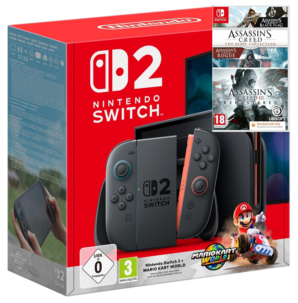 Igraća konzola NINTENDO Switch 2 crveno/plavi Joy-Con + Mario Kart World + Assassins Creed Double Pack (Kod u kutiji)
