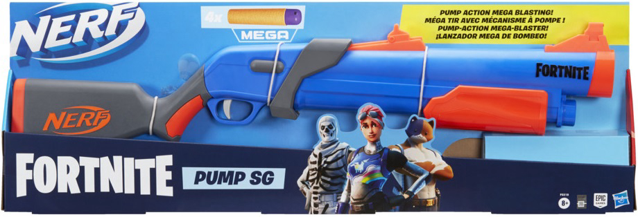 Ispaljivač NERF Fortnite Pump SG blaster inspiriran je Fortnite opremom i dočarava izgled identičnog oružja dostupnog u popularnoj videoigri. Ispalite veliku Nerf Mega strelicu u bitku i postanite kralj mape! Priprema za akciju je jednostavna: Otvorite vratašca sa strane ovog blastera s mehanizmom komore, umetnite 1 strelicu unutra, pomaknite mehanizam pumpe naprijed-natrag da biste napunili blaster. Zatim povucite okidač i ispalite strelicu. Ispaljivač dolazi s 4 NERF Mega strelice - tako da odmah možete napuniti drugu strelicu i nastaviti borbu. Nisu potrebne baterije. Preporučena dob: 8 ili više godina.