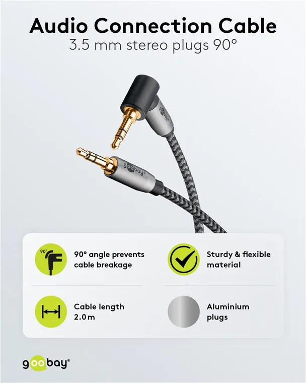 Goobay Plus serija dolazi u tankom, elegantnom metalnom dizajnu u Sharkskin Grey boji. Kabel s utičnicom vaše je svestrano rješenje za prijenos zvuka s pametnih telefona, prijenosnih računala ili tableta - za uživanje u glazbi, podcastovima ili filmovima putem hi-fi sustava kod kuće ili na radiju u automobilu na putu.