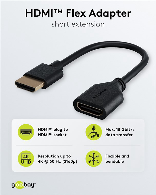 Kabel HDMI GOOBAY HDMI (M) - HDMI (Ž) Flex adapter 10cm produžni 4K60Hz cabletag 64824