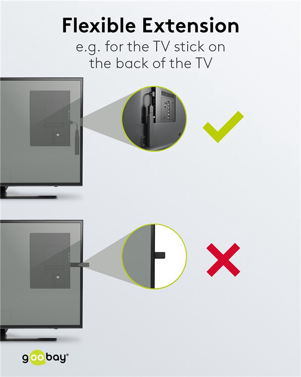 Fleksibilan i savitljiv kratki nastavak za teško dostupne priključke, npr. na stražnjoj strani televizora.