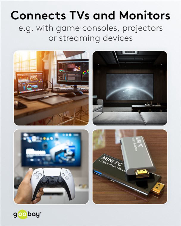 Produžuje HDMI™ kabel i prikladan je za spajanje standardnih HDMI™ uređaja. Prijenos Ultra HD signala do 4K @ 60 Hz (2160p) HDMI™ adapter s maksimalnom brzinom prijenosa do 18 Gbit/s HDMI™ High Speed ??kabel povezuje televizore i monitore s Amazon Fire TV Stickom, Chromecastom, Blu-ray playerima, DVD playerima i igraćim konzolama. Adapterski kabel za trenutne značajke kao što su HDCP, 3D, 4K 3D i HDR. Pozlaćeni HDMI™ utikači i napredna tehnologija jamče savršen prijenos signala, čist zvuk, oštru sliku i video.