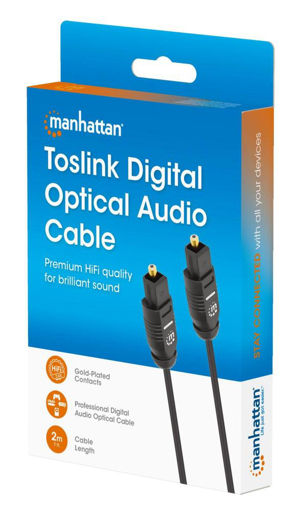 Doživite vrhunsko zvučno iskustvo za svoju kućnu zabavu s profesionalnim Manhattan Toslink digitalnim optičkim S/PDIF audio kabelom. Prenosi vrhunski surround zvuk visoke razlučivosti između AV komponenti s optičkim sučeljima. Ponovno otkrijte svoje omiljene filmove, glazbu i videoigre uz kristalno čisti zvuk. Ovaj optički audio kabel idealan je za sve uređaje s optičkim sučeljem kao što su AV prijemnici, (pret)pojačala, soundbarovi, zvučni sustavi, televizori, računala, DAC-ovi (digitalno-analogni pretvarači), PlayStation® (PS3/PS4/PS4 Pro), Xbox® (One/360) i drugi.
