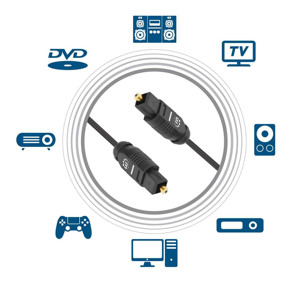 Doživite vrhunsko zvučno iskustvo za svoju kućnu zabavu s profesionalnim Manhattan Toslink digitalnim optičkim S/PDIF audio kabelom. Prenosi vrhunski surround zvuk visoke razlučivosti između AV komponenti s optičkim sučeljima. Ponovno otkrijte svoje omiljene filmove, glazbu i videoigre uz kristalno čisti zvuk. Ovaj optički audio kabel idealan je za sve uređaje s optičkim sučeljem kao što su AV prijemnici, (pret)pojačala, soundbarovi, zvučni sustavi, televizori, računala, DAC-ovi (digitalno-analogni pretvarači), PlayStation® (PS3/PS4/PS4 Pro), Xbox® (One/360) i drugi.