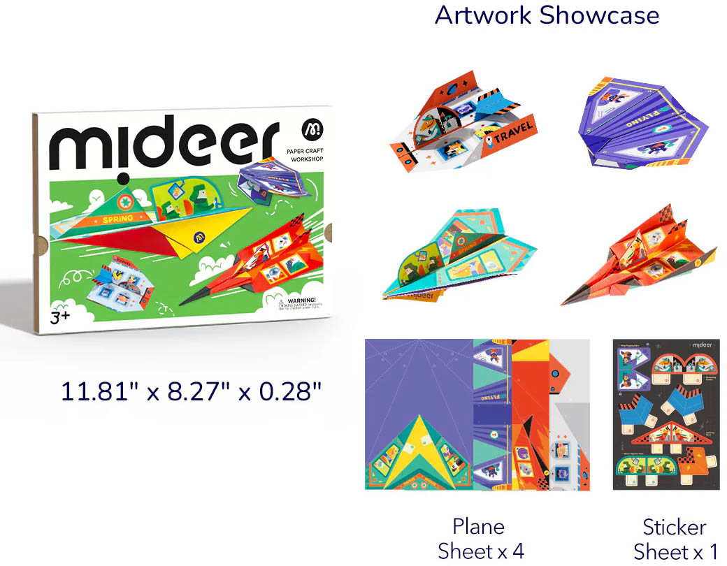 Kreativni set Mideer Paper Craft Workshop – Dnevnik leta omogućuje djeci istraživanje fascinantnog svijeta aerodinamike kroz izradu i personalizaciju papirnatih zrakoplova. Ovaj set sadrži različite predloške s jedinstvenim dizajnima koji djecu uče preciznom savijanju papira, razvijajući pritom njihovu finu motoriku, strpljenje i logičko razmišljanje. Svaki model zrakoplova dizajniran je za optimalne performanse leta, pružajući djetetu neposredan uvid u osnovne principe fizike i zrakoplovstva na zabavan način. Materijali su visoke kvalitete, ekološki prihvatljivi i sigurni za korištenje, u skladu s međunarodnim sigurnosnim standardima. Sadržaj pakiranja: set ilustriranih listova papira s predlošcima za zrakoplove, naljepnice za ukrašavanje i priručnik s uputama za slaganje. Visina: oko 31 cm (pakiranje). Preporučena dob: 5 ili više godina.