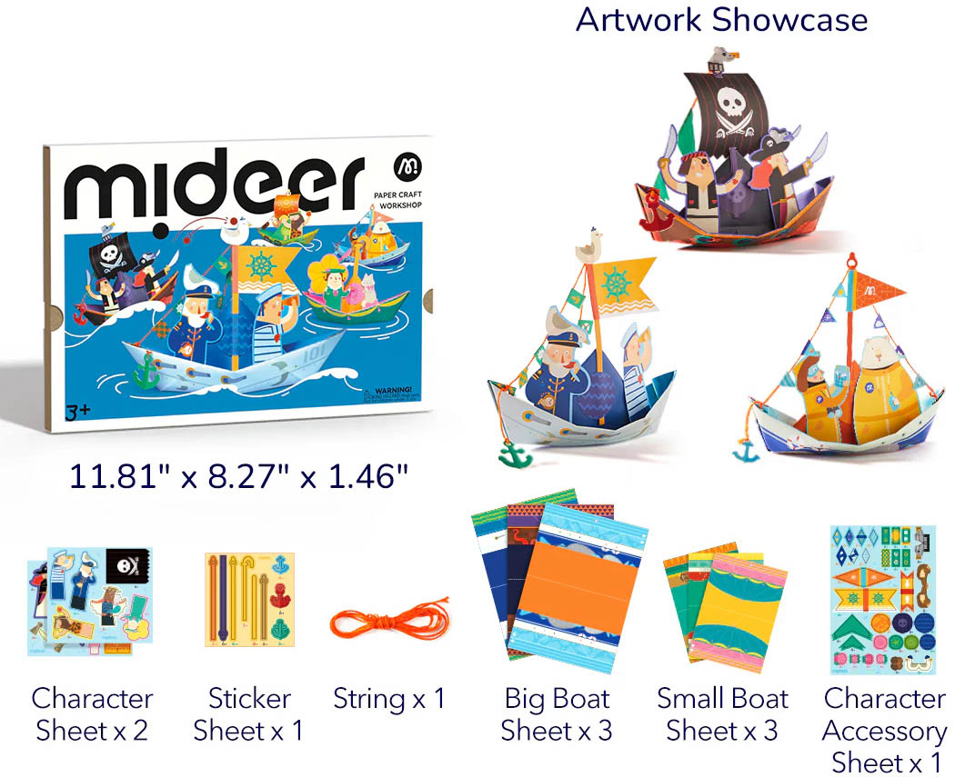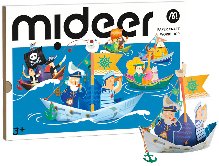 Kreativni set Mideer Paper Craft Workshop – Pomorski istraživač poziva djecu na uzbudljivo putovanje kroz svijet nautike i morskih dubina uz pomoć vještine savijanja papira. Ovaj set sadrži različite ilustrirane predloške za izradu papirnatih brodova i morskih stvorenja, čime se na zabavan način razvija dječja fina motorika, preciznost i prostorno razmišljanje. Svaki model je dizajniran s pažnjom na detalje, potičući dijete na istraživanje osnova konstrukcije i dizajna dok stvara vlastitu flotu. Svi materijali su visoke kvalitete, netoksični i ekološki prihvatljivi, u potpunosti usklađeni s međunarodnim sigurnosnim standardima. Sadržaj pakiranja: set ilustriranih listova papira s predlošcima za brodove, dekorativne naljepnice i priručnik s uputama za slaganje. Visina: oko 31 cm (pakiranje). Preporučena dob: 5 ili više godina.