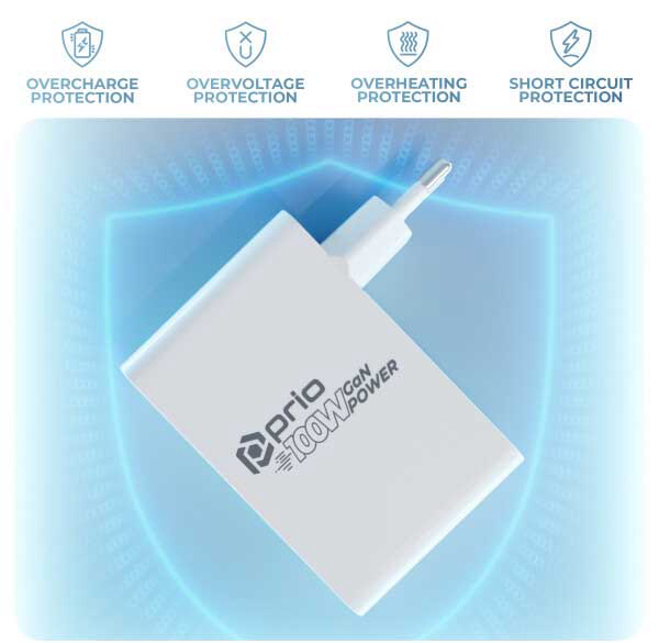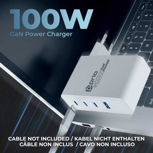 Kućni punjač PRIO Europlug na 1x USB (Ž) i 3x USB C (Ž) GaN 100W Quick charge 3.0