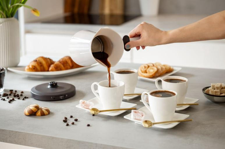 Kuhalo za vodu Gorenje TCM350W ima kapacitet za 4 šalice bogate turske kave. Dizajnirano za ljevake i dešnjake, dvostruki izljev omogućuje jednostavno posluživanje bez prolijevanja. Ergonomska ručka s osloncem za prste osigurava stabilno i udobno držanje za glatko i kontrolirano izlijevanje. Jasna, osvijetljena kontrola obavještava vas kada se kava kuha, što olakšava vašu svakodnevnu rutinu. Kabel se može spremiti u bazu za napajanje, održavajući vašu radnu površinu urednom i bez nereda.