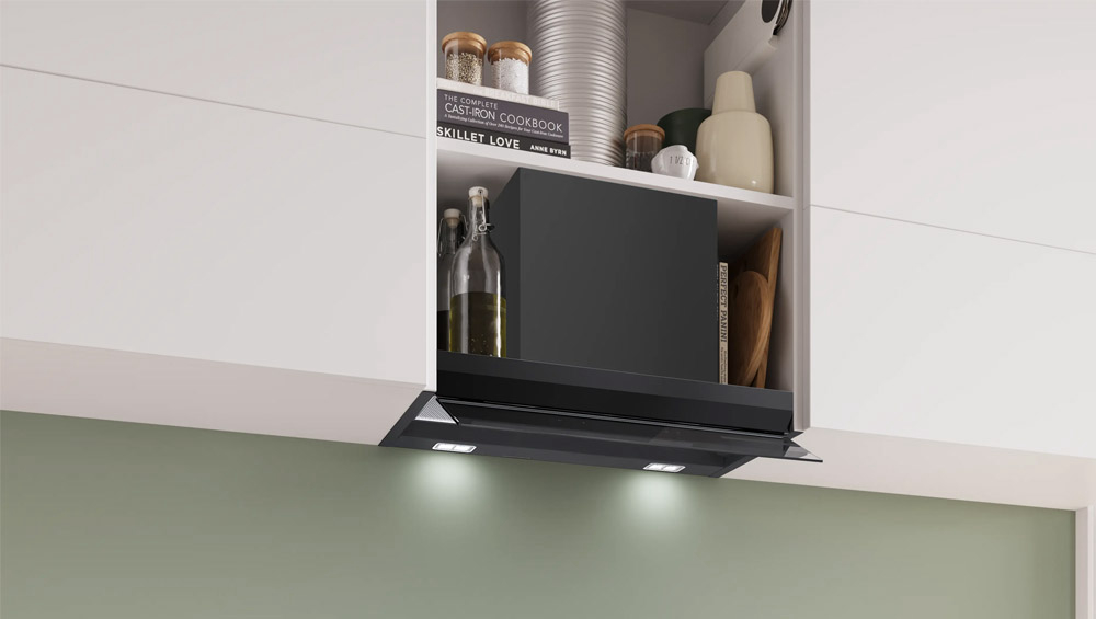 Ova kuhinjska napa automatski prilagođava brzinu ventilatora zahvaljujući Smart Hood Automatic funkciji, što omogućava praktično i bezbrižno kuhanje. Ovaj model nudi maksimalnu učinkovitost odvođenja zraka do 433 m3/h u normalnom načinu rada, uz do 699 m3/h u intenzivnom načinu, što osigurava učinkovito uklanjanje pare i mirisa iz prostora za kuhanje. Napa koristi EcoSilence Drive motor koji je izuzetno tih, energetski učinkovit i snažan, a DirectSelect stakleni panel omogućava jednostavno i intuitivno dodirno upravljanje. Dizajnom u obliku slova T pruža dodatni prostor unutar kuhinjskog elementa i nosivost do oko 20 kg, dok LED osvjetljenje osigurava jasno i ugodno osvjetljenje ploče za kuhanje.