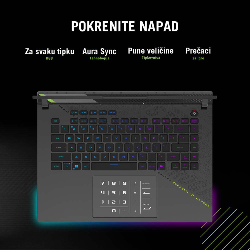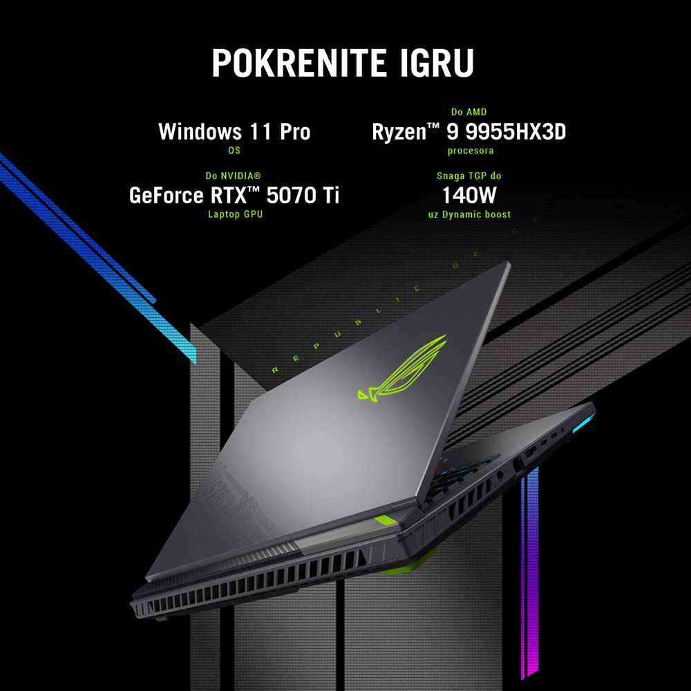 Nacrtajte više okvira i osvojite više igara uz Strix G16. Može se pohvaliti maksimalnim TGP-om s Dynamic Boostom, budite spremni dominirati konkurencijom u svim najnovijim igrama. Potpomognut namjenskim MUX prekidačem i NVIDIA Advanced Optimus podrškom, Strix G16 otključava pravi potencijal svog hardvera. Otkrijte prednost RTX AI. Izgrađeni za eru umjetne inteligencije, GeForce RTX™ GPU-ovi imaju specijalizirane AI tensor jezgre koje pružaju vrhunske performanse i revolucionarne mogućnosti. Kako bi se smjestile tako snažne komponente, kućište i matična ploča Strixa G16 redizajnirani su kako bi se prilagodili hladnjaku pune širine, čija su rebra pomaknuta još bliže ispušnim otvorima za učinkovitije hlađenje.