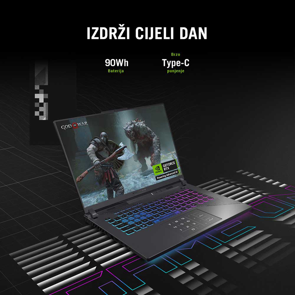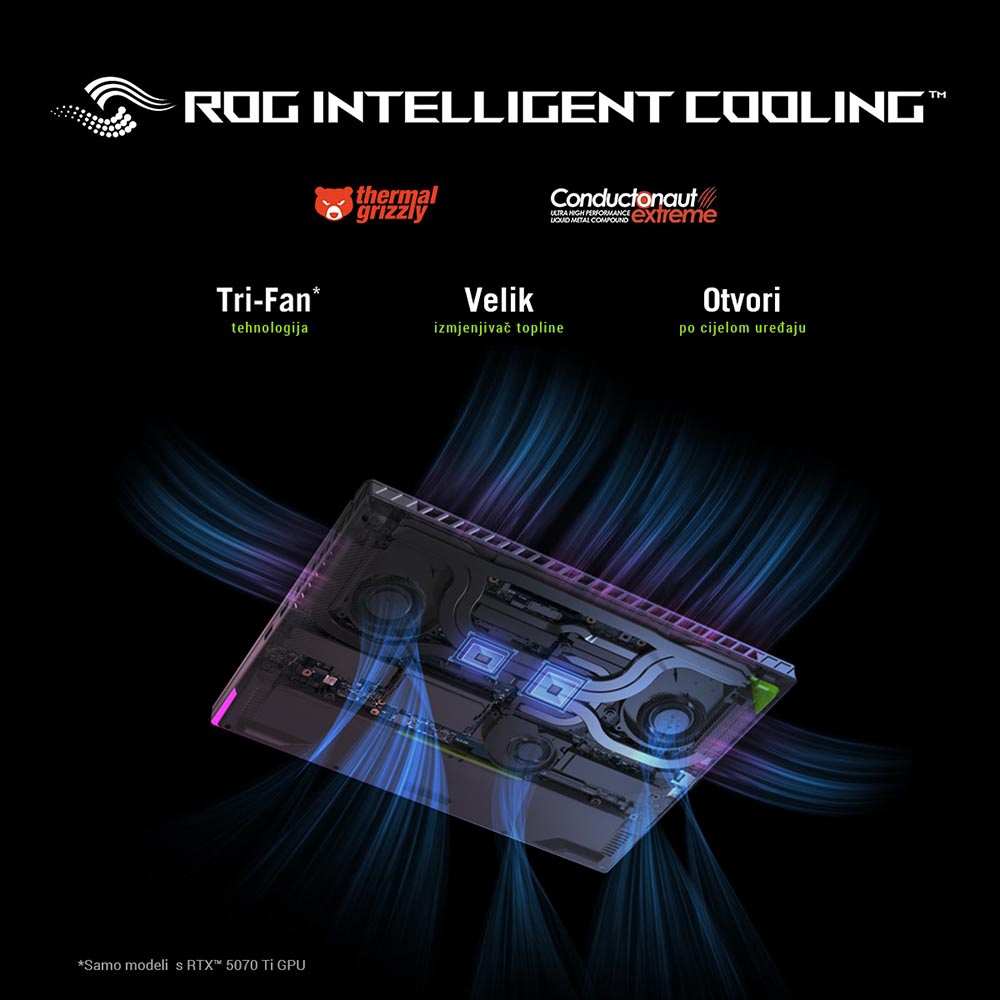 Nacrtajte više okvira i osvojite više igara uz Strix G16. Može se pohvaliti maksimalnim TGP-om s Dynamic Boostom, budite spremni dominirati konkurencijom u svim najnovijim igrama. Potpomognut namjenskim MUX prekidačem i NVIDIA Advanced Optimus podrškom, Strix G16 otključava pravi potencijal svog hardvera. Otkrijte prednost RTX AI. Izgrađeni za eru umjetne inteligencije, GeForce RTX™ GPU-ovi imaju specijalizirane AI tensor jezgre koje pružaju vrhunske performanse i revolucionarne mogućnosti. Kako bi se smjestile tako snažne komponente, kućište i matična ploča Strixa G16 redizajnirani su kako bi se prilagodili hladnjaku pune širine, čija su rebra pomaknuta još bliže ispušnim otvorima za učinkovitije hlađenje.