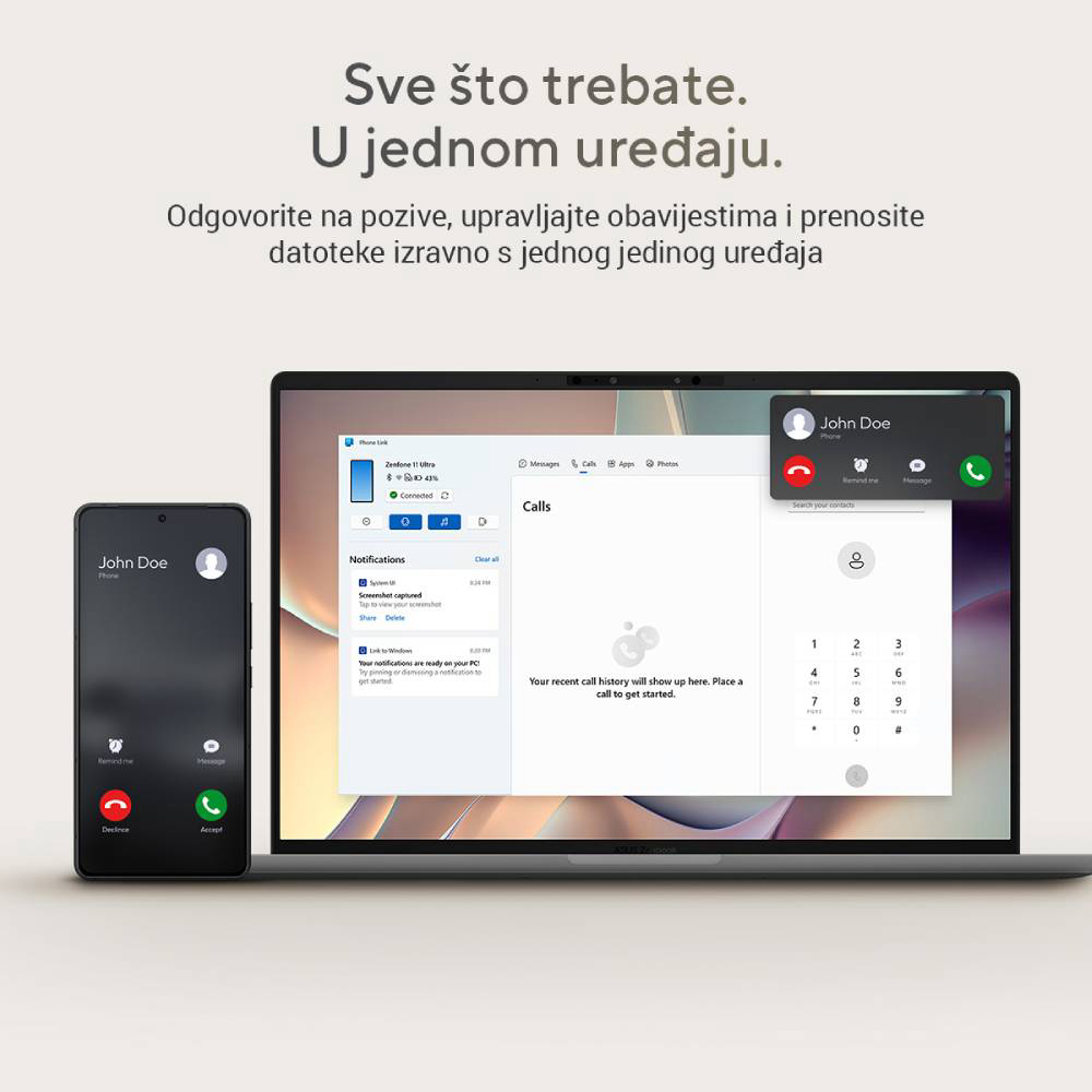 Obavite veće stvari s lakšim dizajnom. Nešto manje od kilograma Zenbook A14 je stvoren za putovanja. Njegov procesor Snapdragon X serije oslobađa sve prednosti Copilota+ i osnažuje vaš stil života s trajanjem baterije koje traje više radnih dana. Potpuno novi minimalistički dizajn, s bojama u tonu i materijalima inspiriranim prirodom, odiše elegancijom. Poklopac prijenosnog računala, okvir tipkovnice i baza izrađeni su od Ceraluminum, našeg nevjerojatnog materijala otpornog na habanje, ogrebotine i mrlje.