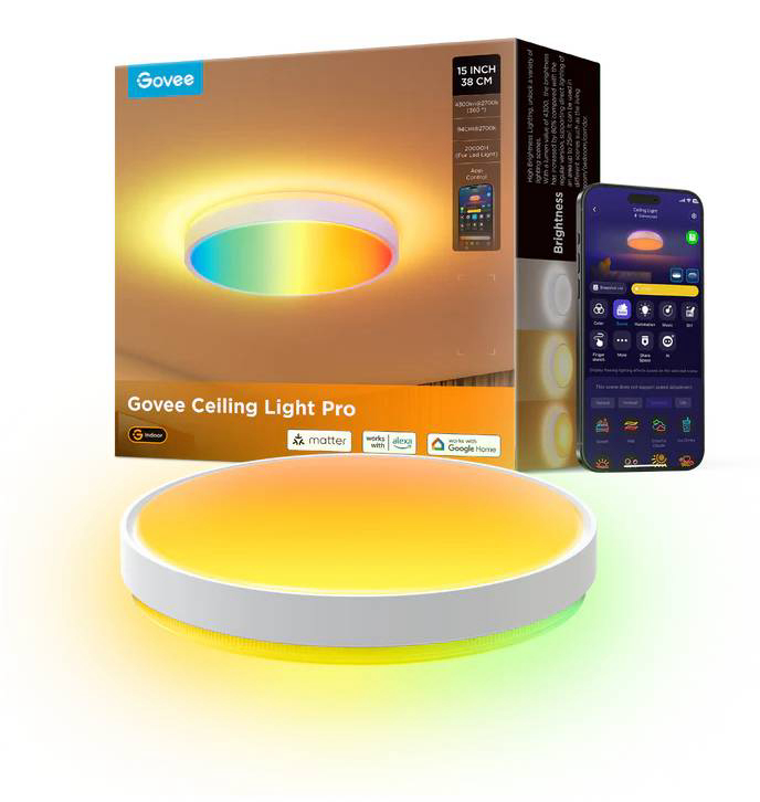 Govee Smart Ceiling Light Plus sa svojom RGBIC+WW tehnološkom magijom, pretvara vašu sobu u vibrantnu zemlju čuda. Većih dimenzija, prekriva vaš prostor zadivljujućim bojama i efektima. Unutarnje LED perle glavnog svjetla raspoređene su u pet koncentričnih krugova. Neovisna kontrola za svako svjetlo, ukupno 120 segmenata, stvarajući detaljnije i dinamičnije efekte. Uključuje 66+ načina scena, omogućujući vam DIY bilo kojeg svjetlosnog efekta. Prilagodite svoje svjetlo glasovnom naredbom. Podržava Alexa, Google Assistant i Matter. Diskretna moda s jednostavnim bijelim okruglim izgledom, pogodno za moderan stil doma.