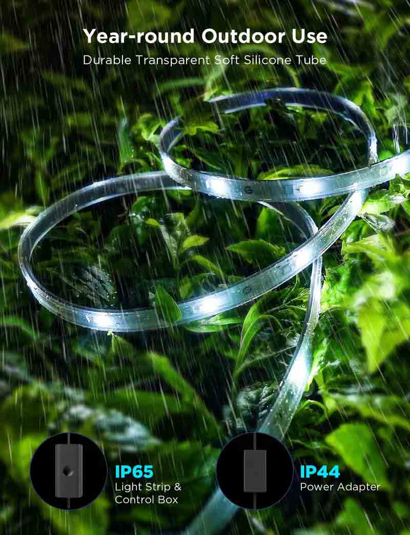 Osvijetlite svoje terase, vrtove i ostale vanjske prostore s našim poboljšanim Govee RGBICWW vanjskim LED trakama. Transformirajte svoje Halloween ili božićne svečanosti bez ručnog mijenjanja svjetala. Dodatak toplih i hladnih bijelih LED dioda može se prilagoditi za sigurnosnu rasvjetu ili svakodnevnu rasvjetu kada stignete kući. Postavite tajmere i prilagodite temperature boja putem Govee Home aplikacije koristeći Wi-Fi i Bluetooth vezu.
