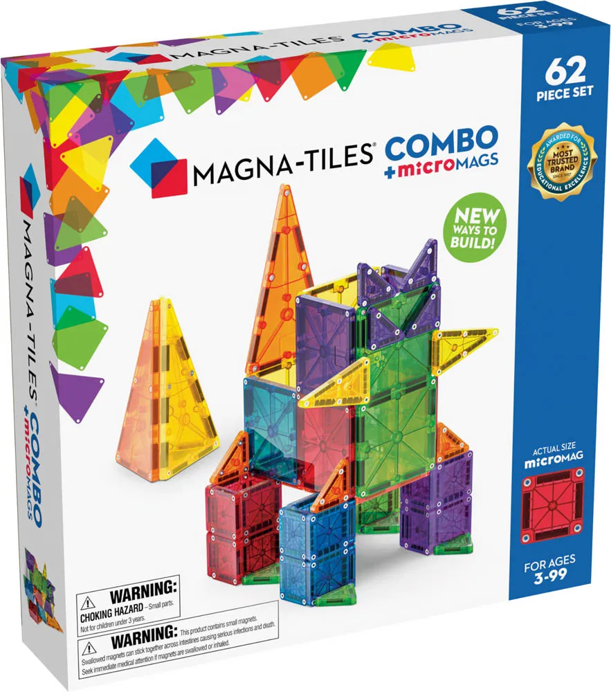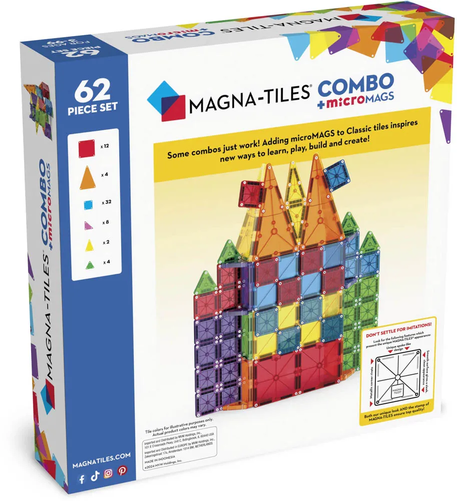 MicroMAGS pločice i klasične pločice potpuno su kompatibilne i savršeno funkcioniraju sa ostalim magnetnim igračkama! Zapravo, djeci koja su testirala pločice svidjelo se kako microMAGS i Classic pločice rade zajedno u stvaranju jedinstvenih konstrukcija, pa smo ih spojili u novu liniju MAGNA-TILES Combo STEM setova! Otkrijte cool nove načine učenja, igranja, gradnje i stvaranja, uz ovaj početni set pločica standardne i mikro veličine. Potpuno kompatibilne microMAGS pločice 75% su manje od tradicionalnih MAGNA-TILES komada. Samo gledajte cool stvari koje djeca mogu napraviti s ovom dobitnom kombinacijom!