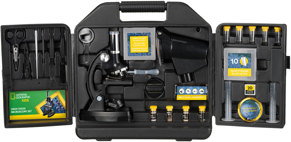National Geographic mikroskop s povećanjem od 300x do 1200x idealan je izbor za prve korake u mikroskopskom svijetu te pruža izvrsnu priliku djeci, učenicima i znatiželjnim početnicima da istražuju mikrosvijet na jednostavan i zabavan način. Zahvaljujući različitim razinama povećanja, omogućuje detaljno promatranje biljnih stanica, sitnih organizama i raznih preparata, dok ugrađeno osvjetljenje osigurava jasnu vidljivost uzoraka tijekom rada. U kompletu dolazi praktičan čvrsti kofer za sigurno spremanje i prijenos kao i bogat set dodataka koji uključuje preparate, stakalca i pribor za samostalne pokuse pa je proizvod odmah spreman za upotrebu. Jednostavno rukovanje, edukativna vrijednost i atraktivan dizajn čine ovaj mikroskop odličnim poklonom za mlade istraživače te savršenim alatom za učenje kroz igru i otkrivanje svijeta znanosti kod kuće ili u školi.
