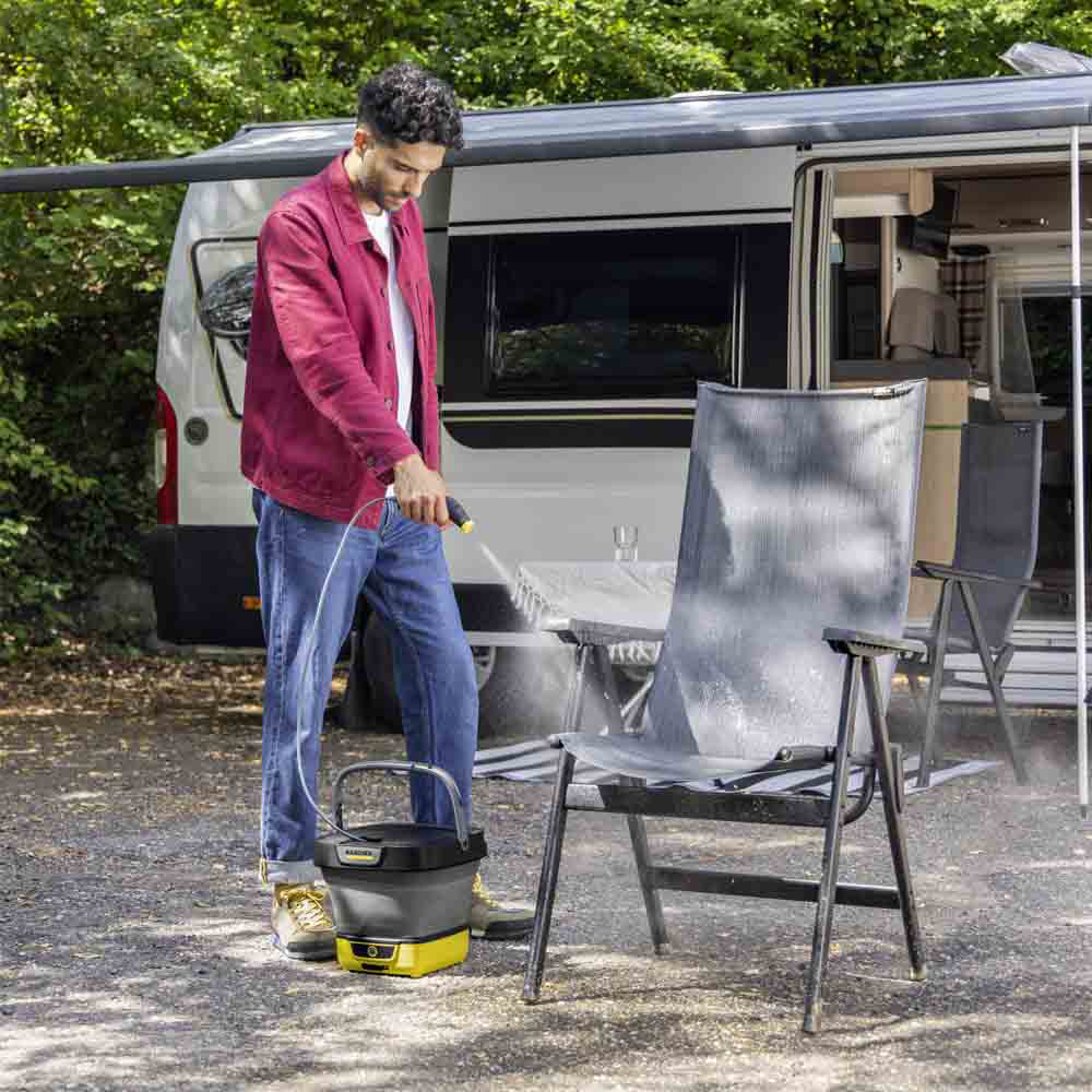 Za sve koji trebaju rješenje za čišćenje u pokretu koje se može pohraniti i transportirati u najmanjem prostoru: kompaktni i lagani Kärcherov sklopivi visokotlačni perač OC 3 ima sklopivi spremnik za vodu. Ovo se može saviti na minimalnu veličinu pakiranja u tren oka i omogućuje odlaganje koje štedi prostor. S litij-ionskom baterijom uređaj je spreman za korištenje bilo gdje u bilo koje vrijeme i bez dugotrajne pripreme: jednostavno ga napunite vodom i krenite. LED zaslon daje informacije o razini napunjenosti baterije. Fleksibilno tlačno crijevo duljine 1,8 metara osigurava optimalnu slobodu kretanja prilikom čišćenja. Bilo u kampu, nakon vožnje biciklom ili u vrtu kod kuće - mobilni vanjski čistač idealno je rješenje za brzo čišćenje.