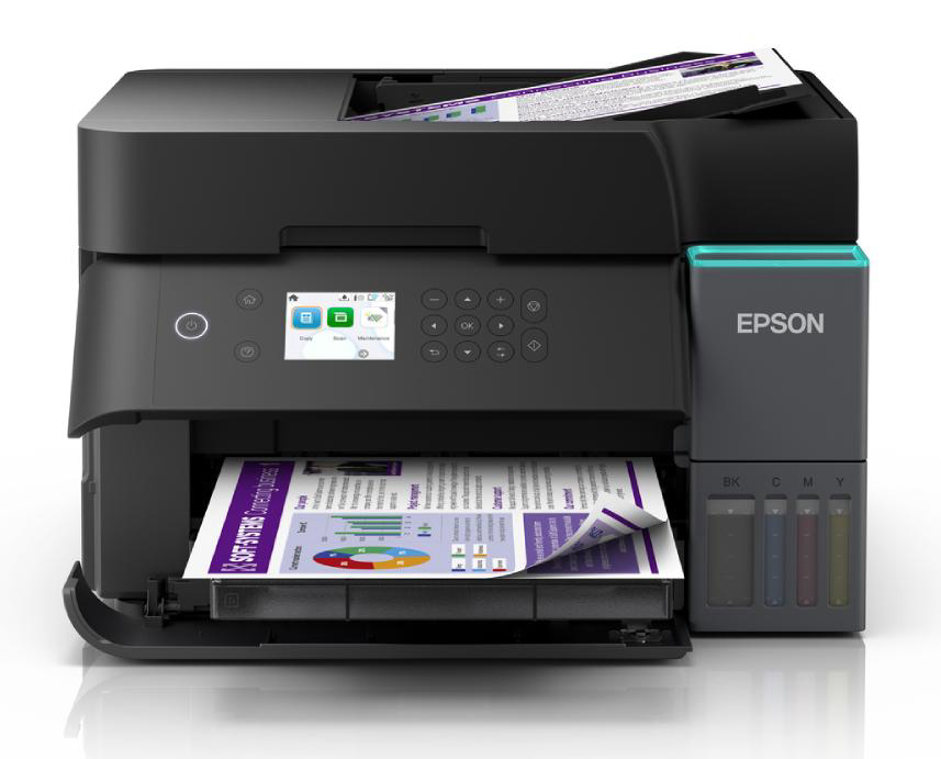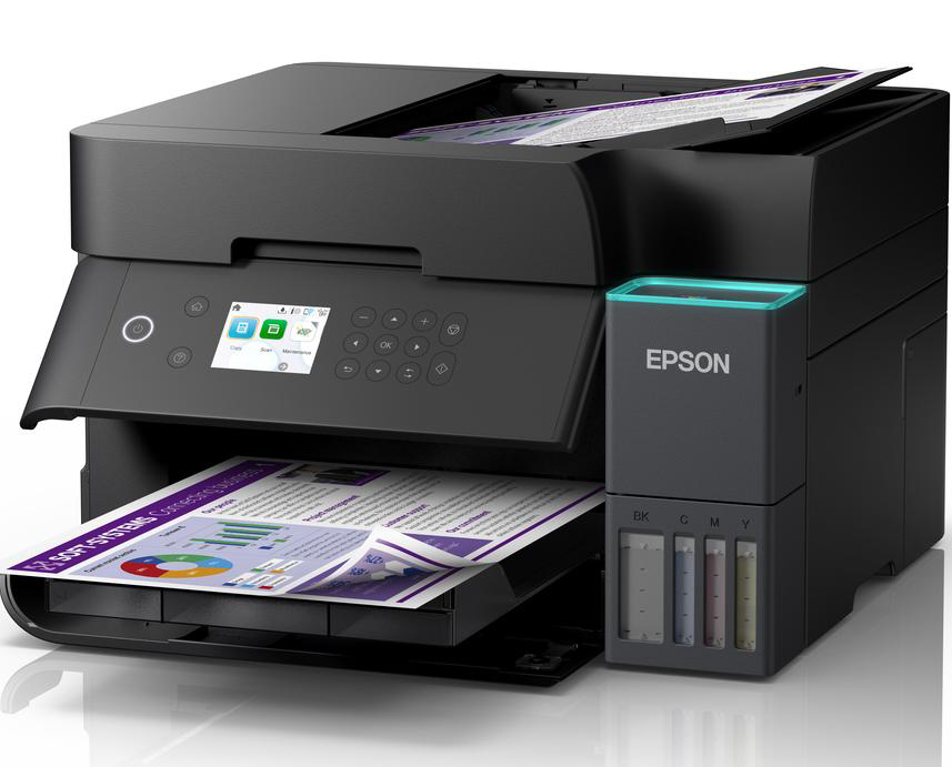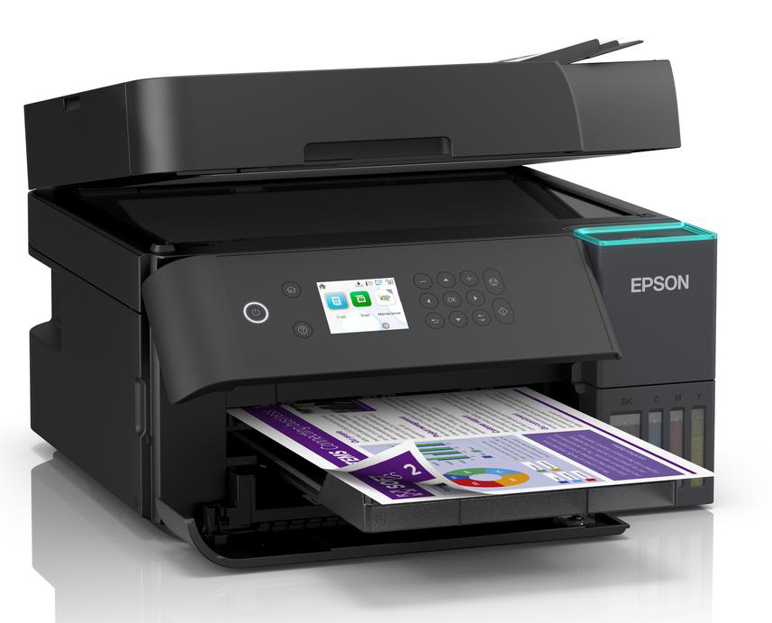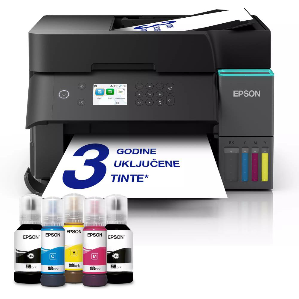 Višenamjenski pisač EcoTank L6370 A4 s Wi-Fi vezom i spremnikom za tintu AirPrint te ADF-om, obostranim ispisom, skeniranjem i kopiranjem, kao i tintom za do tri godine, 4.800 x 1.200 dpi, Brzina ispisa ISO/IEC 24734, 18 Stranica/min Monokrom, 9 Stranica/min Colour, Obostrano skeniranje - DA, Kapacitet ADF-a 30 listova, Priključci: USB, Ethernet, Wi-Fi Direct, Bežični LAN IEEE 802.11a/b/g/n/ac, 375? x 347 x 240 mm, 7,2kg, Usluge mobilnog ispisa i ispisa u oblaku: Apple AirPrint, Mopria, Epson Smart Panel App, Epson Connect (Email Print, Remote Print Driver), Epson Connect (Email Print, Scan-to-Cloud), Jamstvo: 12 Mjeseci U servisu