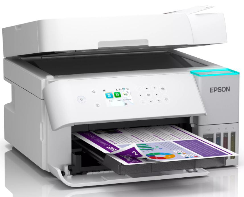 Višenamjenski pisač EcoTank L6376 White A4 s Wi-Fi vezom i spremnikom za tintu AirPrint te ADF-om, automatskim obostranim ispisom, skeniranjem i kopiranjem, kao i tintom za do tri godine. 4.800 x 1.200 dpi, Brzina ispisa ISO/IEC 24734, 18 Stranica/min Monokrom, 9 Stranica/min Colour, Obostrano skeniranje - DA, Kapacitet ADF-a 30 listova, Priključci: USB, Ethernet, Wi-Fi Direct, Bežični LAN IEEE 802.11a/b/g/n/ac, 375? x 347 x 240 mm, 7,2kg, Usluge mobilnog ispisa i ispisa u oblaku: Apple AirPrint, Mopria, Epson Smart Panel App, Epson Connect (Email Print, Remote Print Driver), Epson Connect (Email Print, Scan-to-Cloud), Jamstvo: 12 Mjeseci U servisu