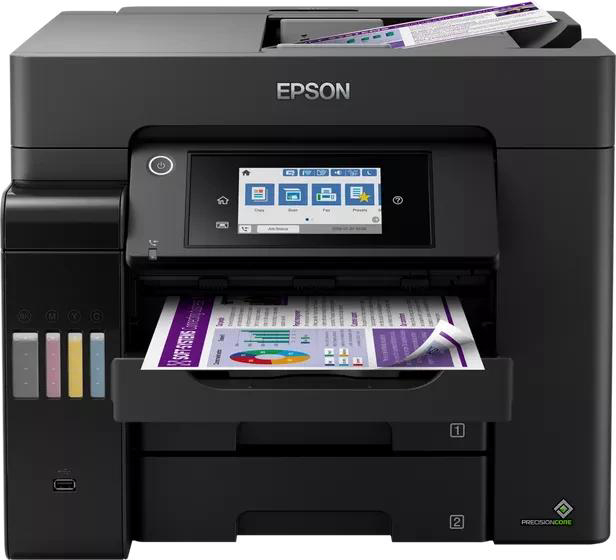 Ispisujte, skenirajte, kopirajte i faksirajte pomoću ovog jednostavnog pisača EcoTank koji omogućuje iznimno nizak trošak po stranici. Zadaci u formatu A4 mogu se brzo izvršavati zahvaljujući velikim brzinama ispisa i skeniranja, dvjema prednjim ladicama kapaciteta 250 listova A4, stražnjem ulaganju za 50 listova i ADF-u kapaciteta 50 listova A4. Ispisujte kako god želite uz mobilno ispisivanje, Ethernet i LCD dodirni zaslon od 10,9 cm. 4.800 x 1.200 dpi rezolucija, Brzina ispisa ISO/IEC 24734 25 Stranica/min Monokrom, 25 Stranica/min Colour, Obostrano skeniranje - Da, Mogućnost crno-bijelog telefaksa i telefaksa u boji kojem se može pristupiti, Broj pretinaca za papir 3, Duplex - Da (A4, obični papir), Odgovarajuća težina papira 64 - 255g/m2, USB, Ethernet, Bežični LAN IEEE 802.11a/b/g/n/ac, Wi-Fi Direct, Epson Connect (iPrint, Email Print, Remote Print Driver, Scan-to-Cloud), Apple AirPrint, Epson Smart Panel App, 12 Mjeseci U servisu, 200.000 Stranica,