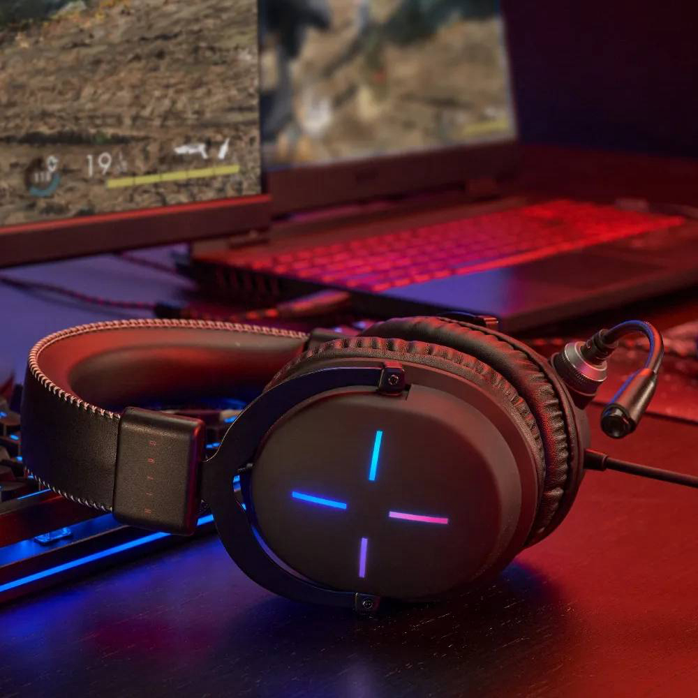 Razgovarajte sa suigračima i protivnicima u igri pomoću višesmjernog mikrofona i preuzmite potpunu kontrolu nad zvukom pomoću ugrađene kontrolne kutije - koja vam omogućuje kontrolu glazbe i razine glasnoće bez propuštanja ritma. Čujte svaki zvuk u igri i uživajte u glazbi u kristalno čistim detaljima uz zvuk visoke osjetljivosti. Dizajn preko uha stvara impresivno audio iskustvo za igranje ili slušanje glazbe, dok RGB svjetla oživljavaju slušalice.