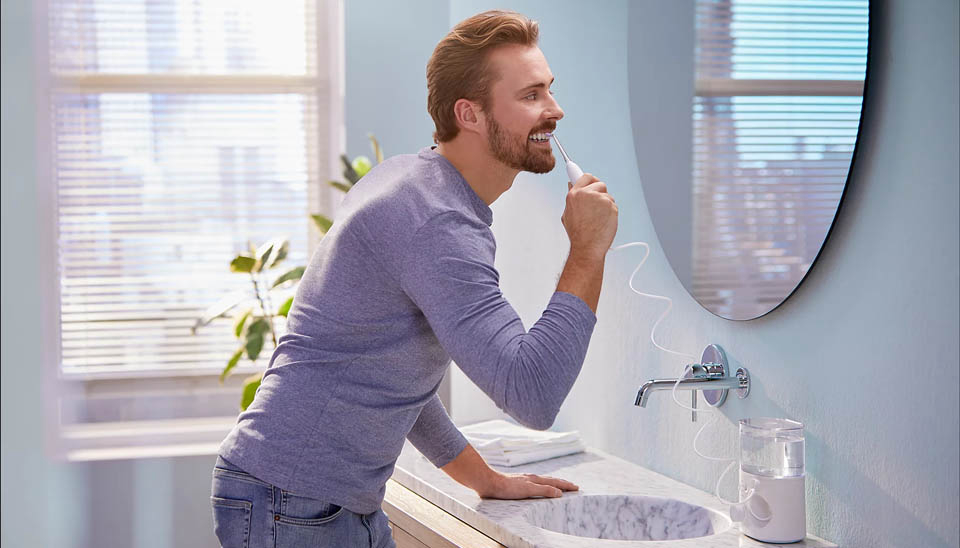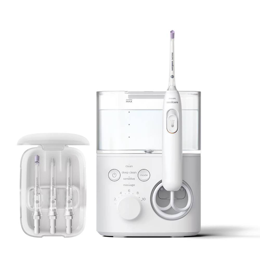 Philips Sonicare Power Flosser 7000 HX3911/40 je napredni oralni tuš dizajniran za temeljito čišćenje prostora između zubi i uz liniju desni, čime pomaže u poboljšanju oralne higijene i zdravlja desni. Ovaj uređaj uklanja do 99,9 % naslaga u tretiranim područjima i opremljen je tehnologijom koja precizno cilja interpoksimalne prostore. Uređaj nudi četiri načina rada, uz 10 stupnjeva intenziteta koje možete prilagoditi svojim potrebama. Uređaj ima ergonomski dizajn ručke, jednostavan sustav priključivanja mlaznica te spremnik od 600 ml koji se lako puni.
