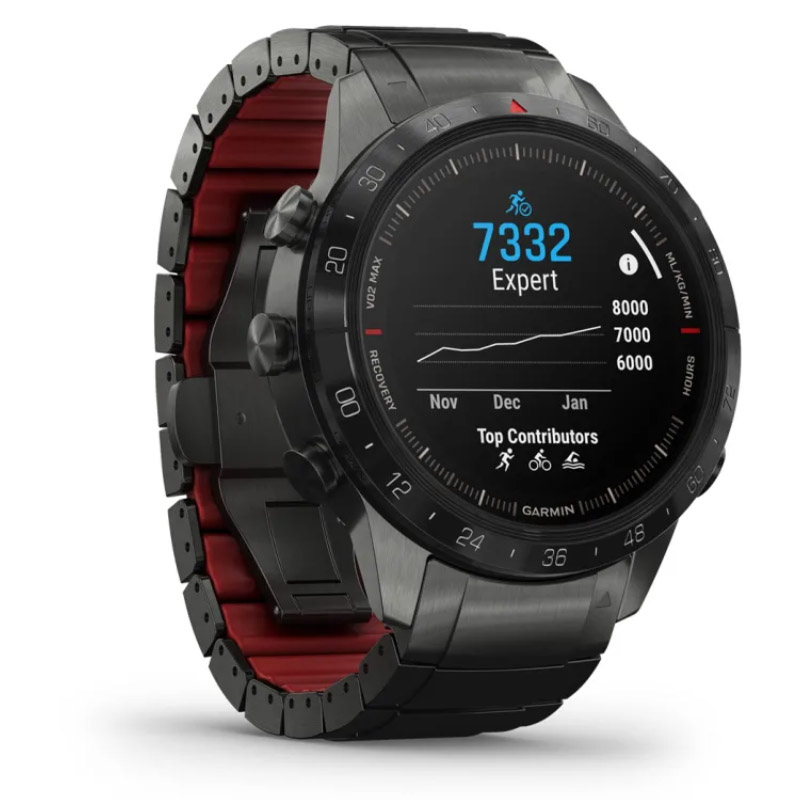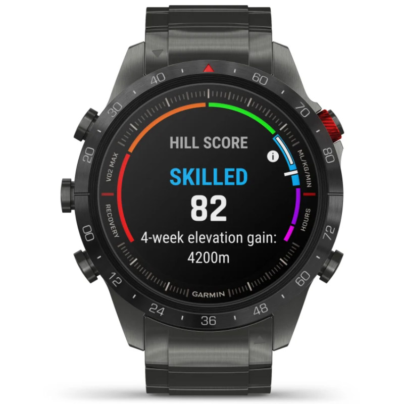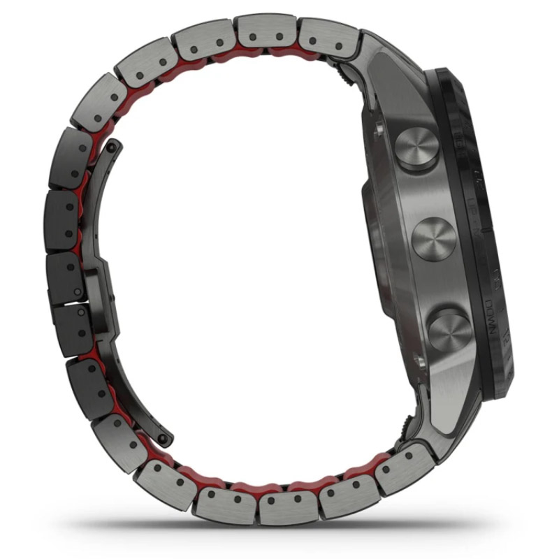 Stvoren za okorjele natjecatelje, ovaj je moderan funkcionalni sat opremljen nevjerojatnim AMOLED dodirnim zaslonom i tradicionalnim gumbima. 46 mm kućište izrađeno je od titanija 5. klase, s hibridnim titanijskim remenom s crvenim silikonskim karikama i leptir-kopčom za sportski dojam. Omogućite si nevjerojatno trajanje baterije za sve treninge uz punjivu litijsku bateriju koja traje do 16 dana u načinu rada pametnog sata i do 42 h u načinu rada s GPS-om. Čim se probudite, saznajte ocjenu spremnosti koja je izračunata na temelju kvalitete spavanja, oporavka, opterećenja treniranja i mnogih drugih faktora i odredite je li dobar dan za intenzivno ili lagano treniranje. Pripremite se za sljedeću utrku sa savjetima za treniranje, personaliziranim preporučenim dnevnim vježbama te predviđanjima vremena završetka utemeljenima na detaljima staze, vremenskim uvjetima i performansama. Nakon svakog vježbanja za vrijeme oporavka sat vam daje do znanja kada ćete biti spremni za novo intenzivno vježbanje.