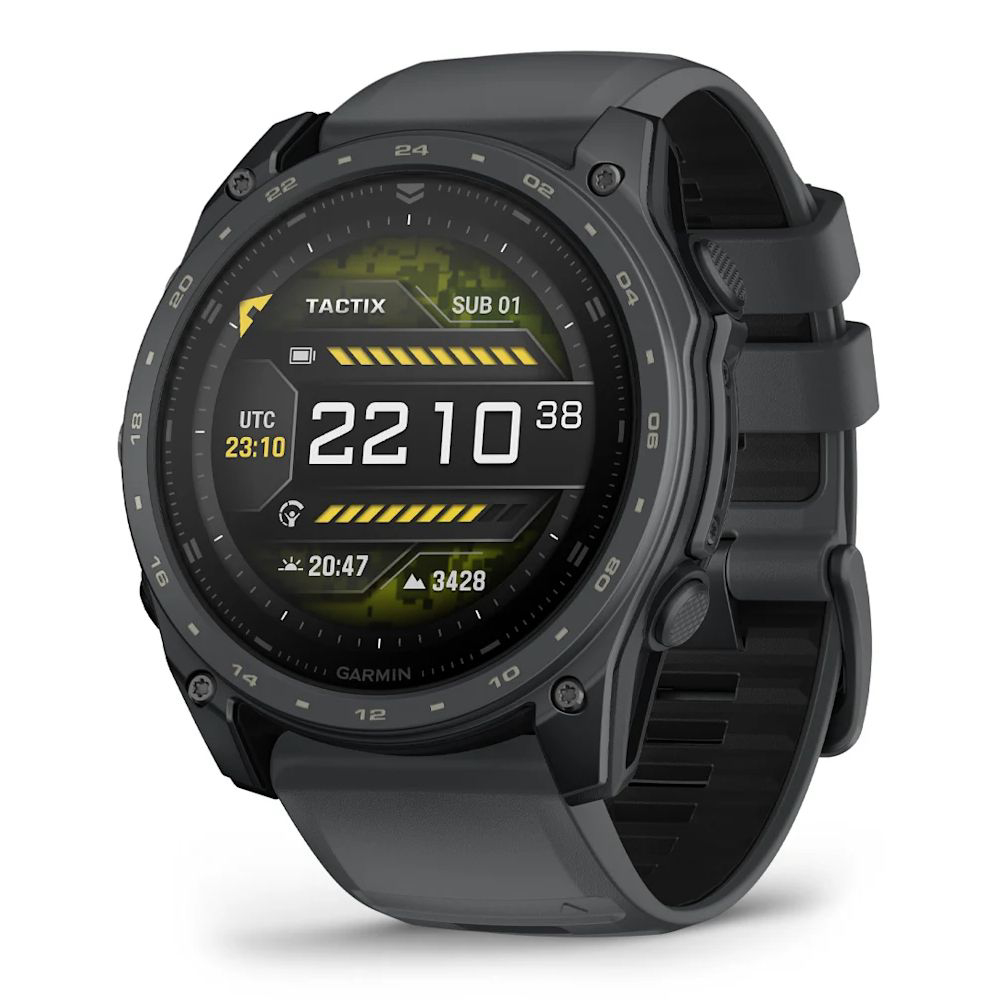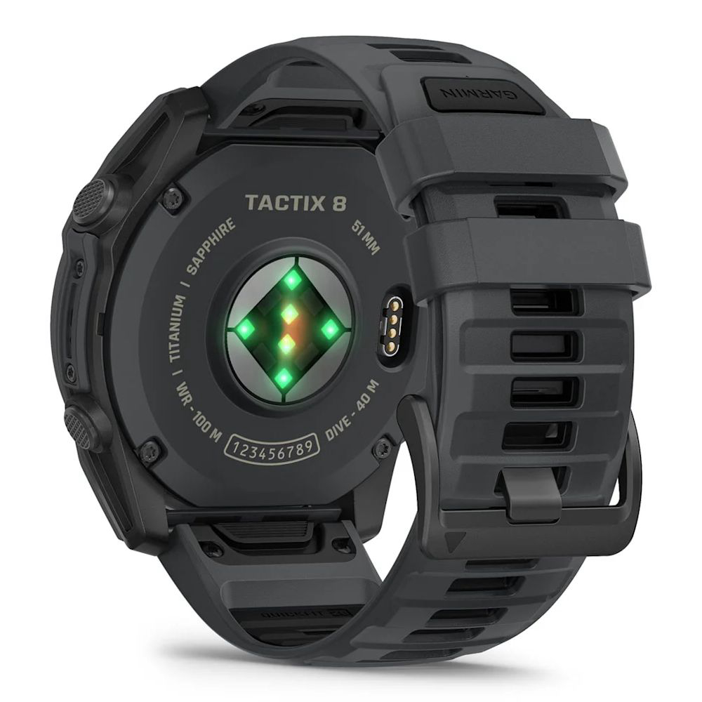 Izdignite se iznad svih s pomoću tactix 8. To je vrhunski taktički pametni sat s nevjerojatnim AMOLED zaslonom, titanijskim okvirom, safirnim staklom, mogućnosti zarona do 40 metara i vrhunskim Cerakote premazom za poboljšanu izdržljivost na terenu. Ovaj napredni taktički GPS pametni sat opremljen je svijetlim AMOLED zaslonom od 1,4”, titanijskim okvirom i safirnim staklom, poboljšanim grafičkim sučeljem i vrhunskim Cerakote premazom koji pruža jedinstvenu i izdržljivu završnu obradu. Testiran je u skladu s američkim vojnim standardima za otpornost na toplinu, udarce i vodu. Namjenske taktičke značajke uključuju aktivnost jumpmastera, projekciju putnih točaka, dvopoložajni GPS format, skriveni način rada, prekidač za isključivanje, kompatibilnost s naočalama za noćno gledanje i aktivnost ruckinga. Ugrađeno svjetlo s višebojnim LED lampicama stalni je izvor jarkog zelenog ili bijelog svjetla u uvjetima slabog osvjetljenja i pomoći će vam da nađete svoj put kada se smrači. U NVG načinu rada, bijela je onemogućena, a zelena svjetiljka može se prigušiti.