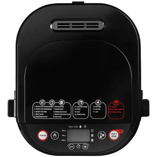 POVRAT OD KUPCA- Uživajte u domaćem kruhu, tijestu za pizzu, tjestenini, džemovima, kašama, žitaricama i proizvodima od mlijeka. Uz pomoć 20 različitih programa koji uključuju bezglutenske programe omogućavaju raznoliku pripremu kruha, ali i slastica. Prilagodite veličinu kruha svojim potrebama, možete izabrati između 3 veličine od 500g pa do 1kg. Uz pomoć intuitivnog ekrana automatski možete pripremiti svoj kruh od miješanja pa sve do pečenja. Također možete i samostalno odabrati vrijeme pečenja uz odgodu od 15 sati i održavanja topline do sat vremena. Posebna posuda također Vam omogućava i pripremu domaćeg jogurta ili svježeg sira do količine od 1l. Kada je u pitanju čišćenje i održavanje, odvojiva neprijanjajuća posuda sigurno se može prati u perilici posuđa.