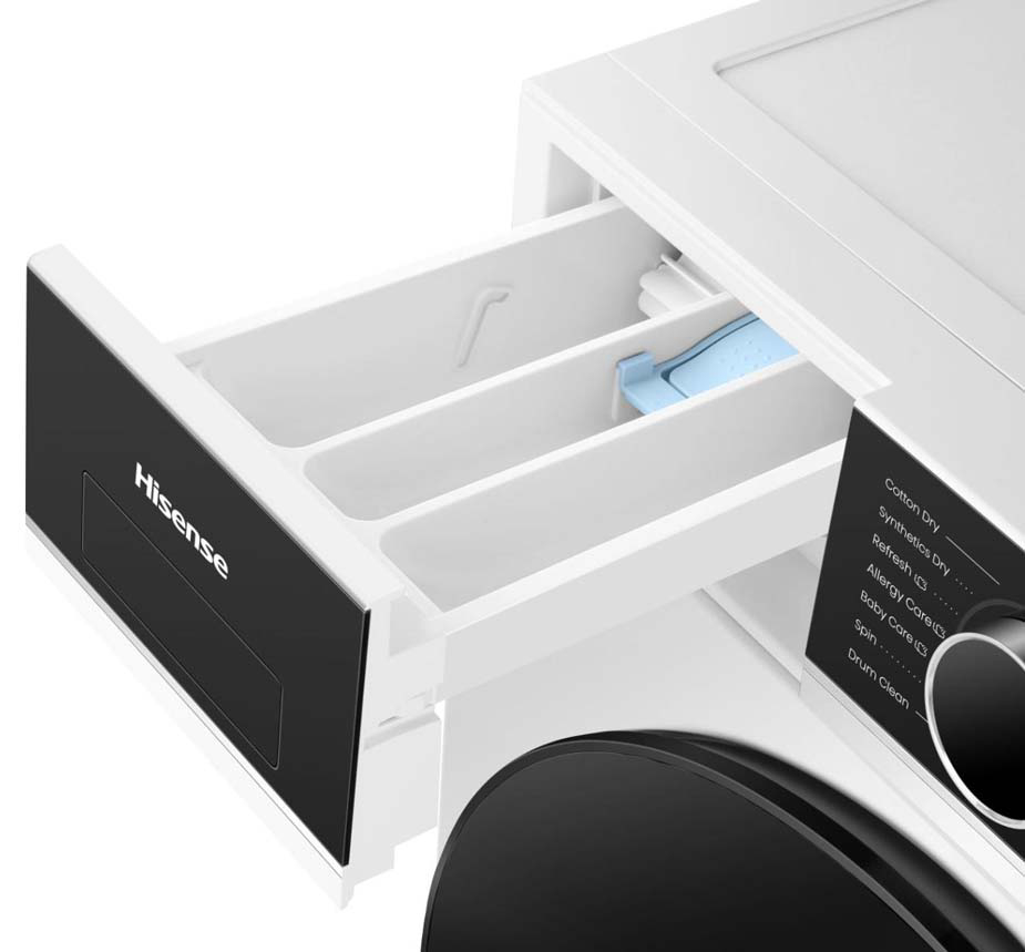 Perilica i sušilica rublja Hisense WD3I8043BWF2 ima inovativnu šarenu ploču koja koristi naprednu LED tehnologiju, osiguravajući izvrsnu jasnoću i svjetlinu čak i pri izravnoj sunčevoj svjetlosti ili slabom osvjetljenju. Osim toga, šareni zaslon omogućuje nesmetan rad i nudi jednostavno interaktivno iskustvo, što ga čini jednostavnim za korištenje čak i starijim odraslim osobama. iFit dizajn nudi savršeno rješenje za uske prostore. S dubinom od 470 mm, perilica rublja 3i pruža impresivan kapacitet do 9 kg punjenja, a istovremeno se lako uklapa u kupaonice za ujednačen izgled. Kutija za deterdžent ima inovativan dizajn valjka. Tijekom rada, voda prenosi deterdžent preko pregrade, osiguravajući snagu za rotaciju valjka i temeljito miješajući deterdžent kako bi se stvorila gusta pjena. Funkcija protiv gužvanja koristi nježnu paru i rotaciju bubnja kako bi se smanjili nabori, osiguravajući da vaša odjeća izgleda glatkije i smanjujući potrebu za glačanjem.