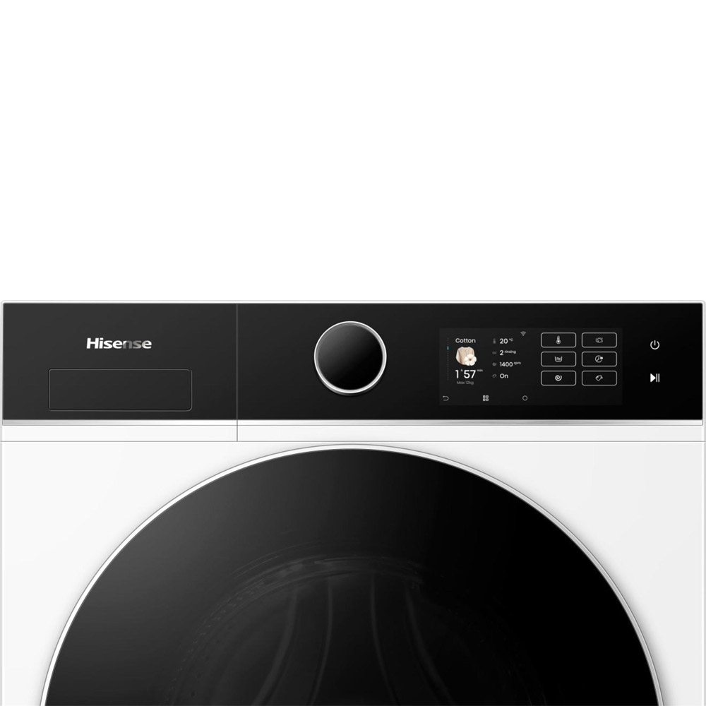 Hisense WF5I1245BWR je moderna samostojeća perilica rublja s prednjim punjenjem koja nudi veliki kapacitet pranja od 12 kg i maksimalnu brzinu centrifuge od 1400 okr/min, što je čini idealnom za veća kućanstva. Perilica je opremljena RainDrop bubnjem zapremine 75 l i nudi 18 programa pranja, uključujući brze programe te programe s parom za osvježavanje i bolju higijenu rublja. Integrirani Wi-Fi i ConnectLife aplikacija omogućuju upravljanje i nadzor rada, a touch zaslon, osvjetljenje bubnja i funkcija Auto Dosing dodatno olakšavaju svakodnevnu upotrebu.