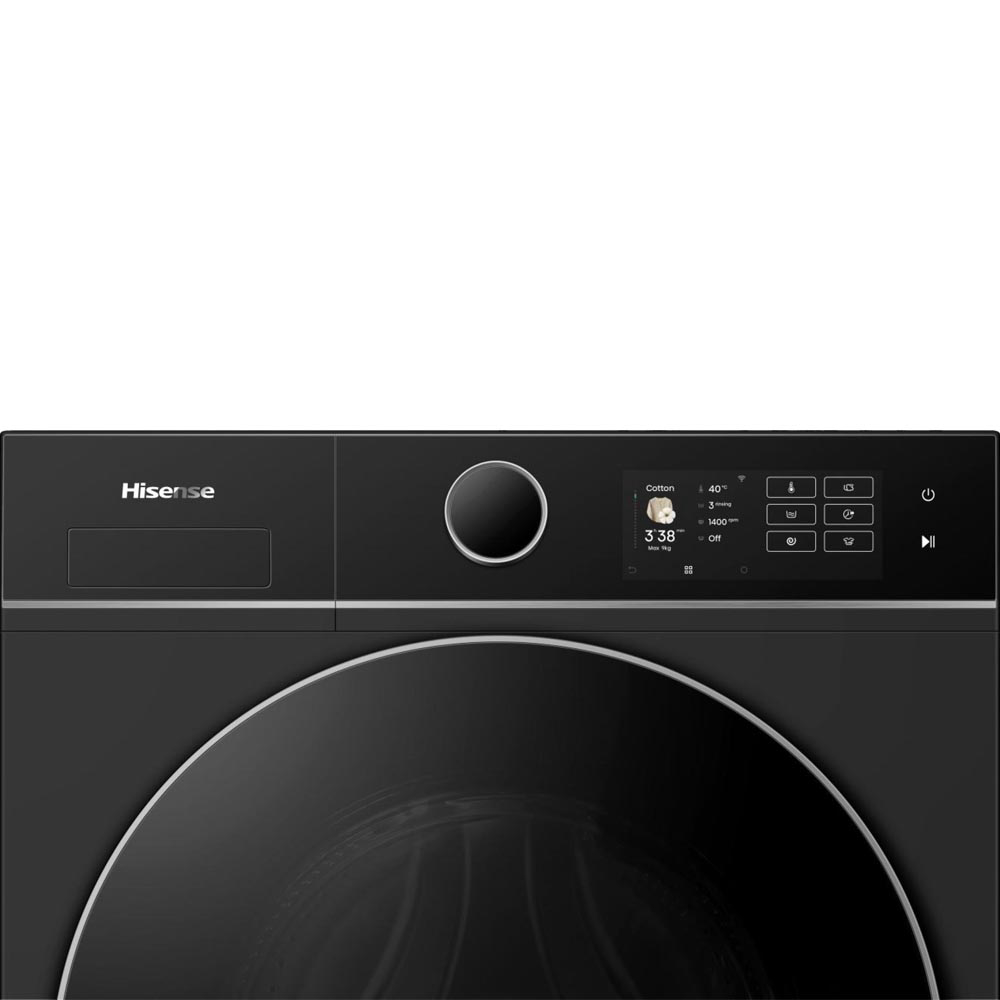 Hisense WF5I9043BBFS je moderna samostojeća perilica rublja s prednjim punjenjem koja nudi kapacitet pranja od 9 kg i maksimalnu brzinu centrifuge od 1400 okr/min, što je čini pogodnom za veća kućanstva i učinkovito svakodnevno pranje. Perilica je opremljena RainDrop bubnjem zapremine 54 l i nudi 19 programa pranja, uključujući brze programe i parno pranje za bolju higijenu i uklanjanje nabora. Integrirani Wi-Fi i ConnectLife omogućuju pametno upravljanje i nadzor rada putem mobilne aplikacije. Model ima 3,55” TFT zaslon osjetljiv na dodir, funkciju odgode početka, osvjetljenje bubnja te sustave poput SteamTech pare i čišćenja bubnja za dodatnu praktičnost i održavanje higijene.