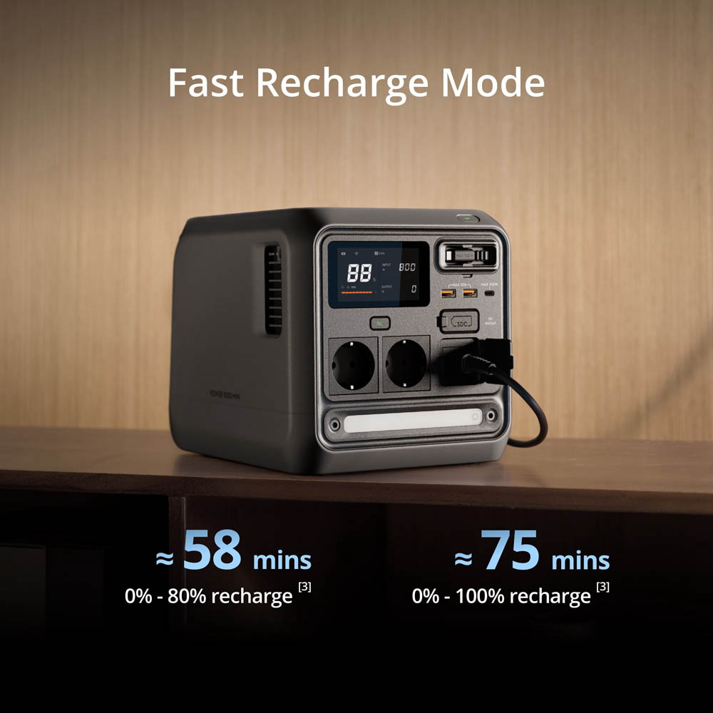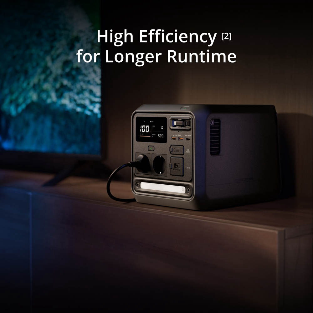 Njegova glavna prednost je izuzetna prenosivost – manji je i lakši od standardnih power stanica, ali bez kompromisa u performansama. Uz maksimalnu izlaznu snagu do 1000 W (800 W kontinuirano), bez problema napaja većinu ključnih uređaja na terenu ili u slučaju nestanka struje.