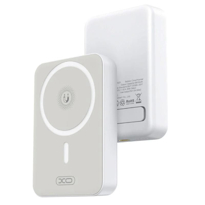 Prijenosni baterijski punjač XO PR231 Quick Charge 10000mAh do 20W žično / do 15W MagSafe bežično - bijeli