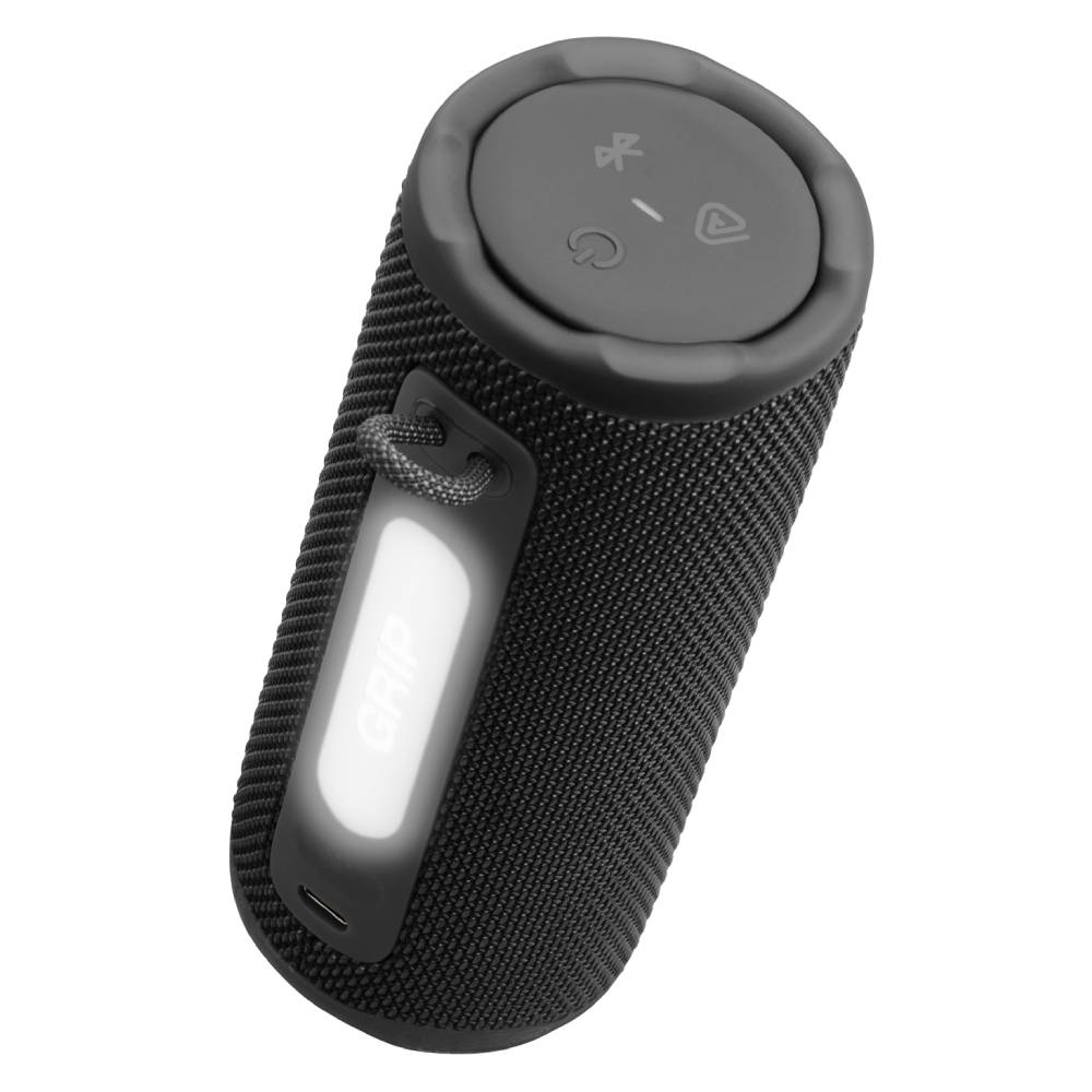 JBL Grip možda jest dovoljno malen da se drži u jednoj ruci, ali ima snažan JBL Pro zvuk. S AI Sound Boostom analizira glazbu u stvarnom vremenu, koristeći algoritam za optimizaciju izlaza za jači zvuk s manje distorzije. Održavajte dobro raspoloženje 12 sati s jednim punjenjem - plus dodatna 2 sata s Playtime Boostom kada su vibracije previše dobre da bi se zaustavile. Stražnja ploča zvučnika ima integrirano ambijentalno svjetlo s jedinstvenim temama i opcijama boja, tako da možete prilagoditi raspoloženje svom miksu. Pomoću aplikacije JBL Portable fino podesite svjetlinu i zaključajte željeni izgled.