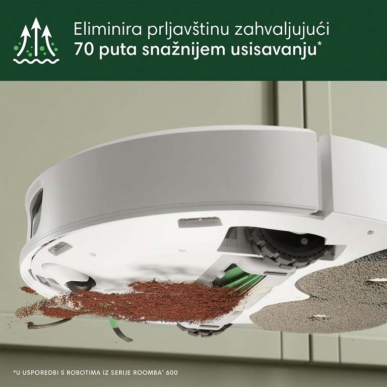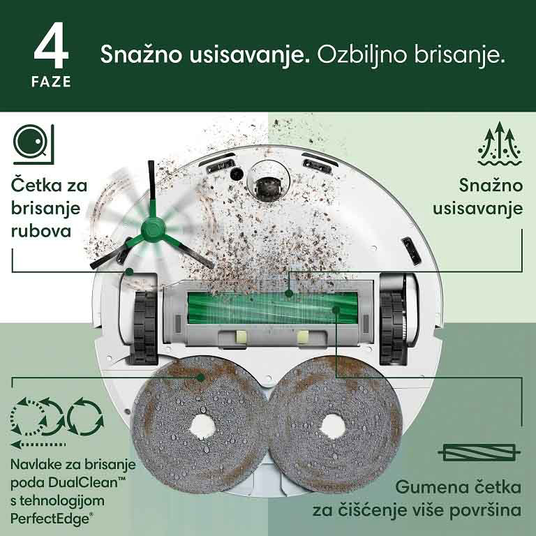 Sve što vam treba u jednom snažnom robotu – Roomba Plus 505 Combo Robot + AutoWash Dock omogućuje detaljno čišćenje bez upotrebe ruku, s iznimnim dometom. DualClean jastučići za brisanje s PerfectEdge tehnologijom približavaju se rubovima 18 % više, dok SmartScrub pruža 2 puta dublje ribanje. Usisavajte uz 70 puta snažnije usisavanje, funkciju Carpet Boost, gumenu četku za sve površine i bočnu četku za čišćenje uz rubove – za potpuno uklanjanje prašine i nečistoća. Dinamična stanica automatski prazni spremnik, osvježava jastučiće tijekom čišćenja, zatim ih pere, suši toplim zrakom i čisti samu sebe – kako bi svaki ciklus započeo i završio potpuno čist.