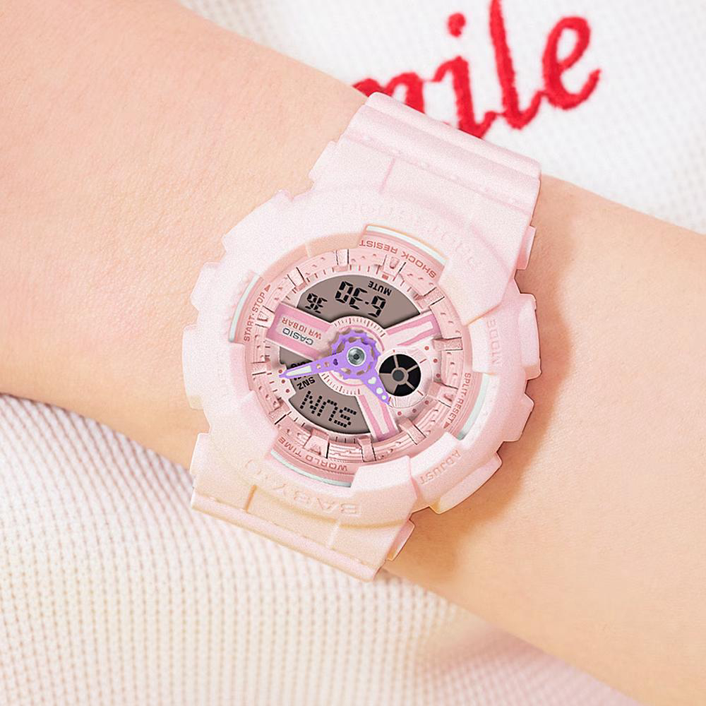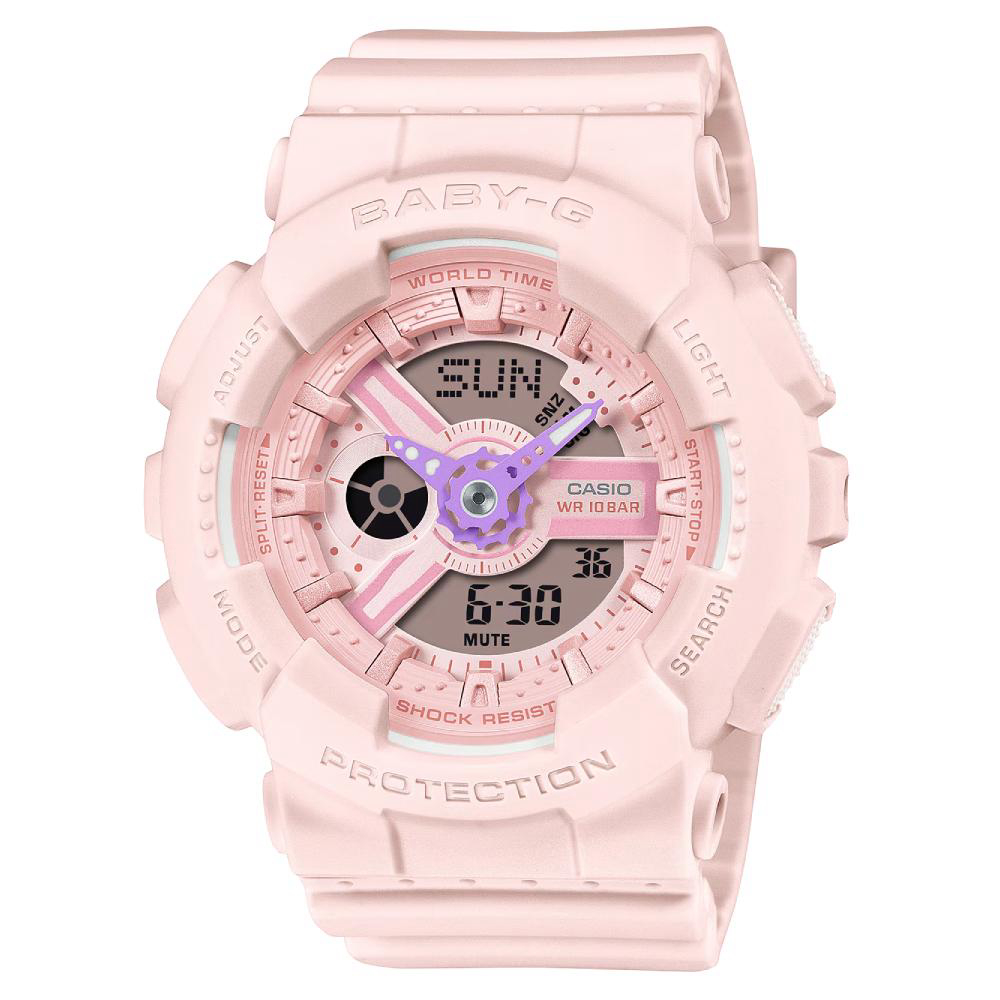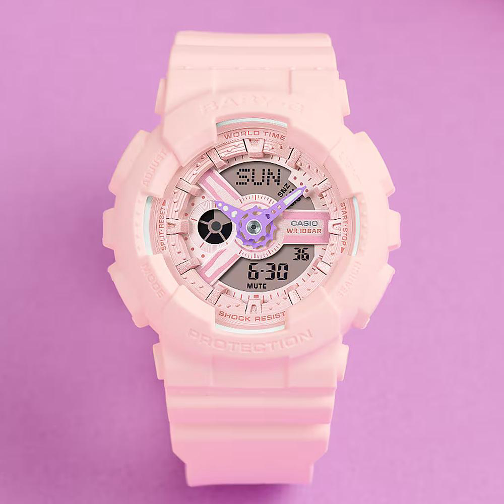 Ručni sat CASIO Baby-G BA-110AH-4AER dio je G-Shock kolekcije kojoj je mehanizam otporan na udarce i vibracije. Sastoji se od mineralnog stakla koje je otporno na ogrebotine.