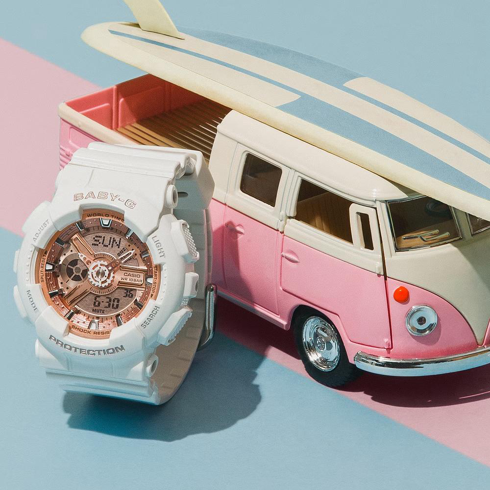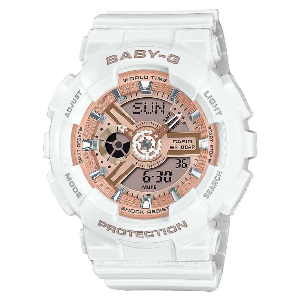Ručni sat CASIO Baby-G BA-110X-7A1ER dio je G-Shock kolekcije kojoj je mehanizam otporan na udarce i vibracije. Sastoji se od mineralnog stakla koje je otporno na ogrebotine.