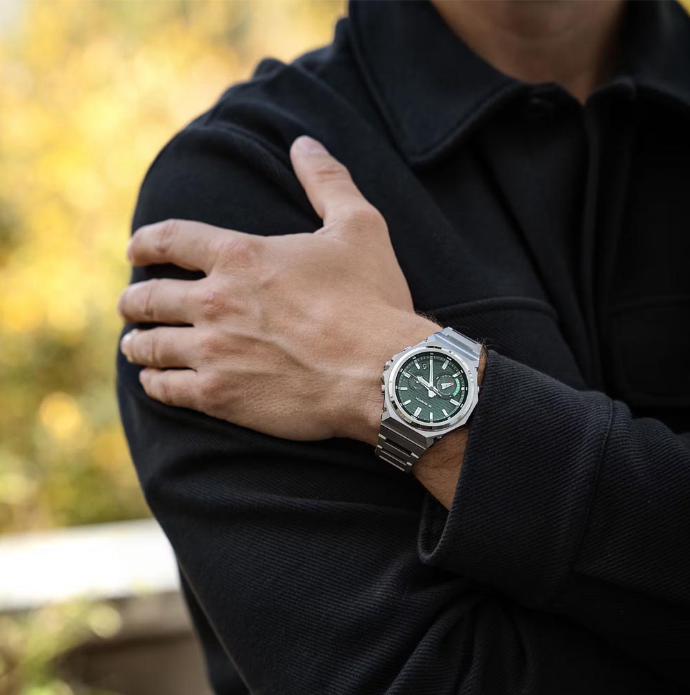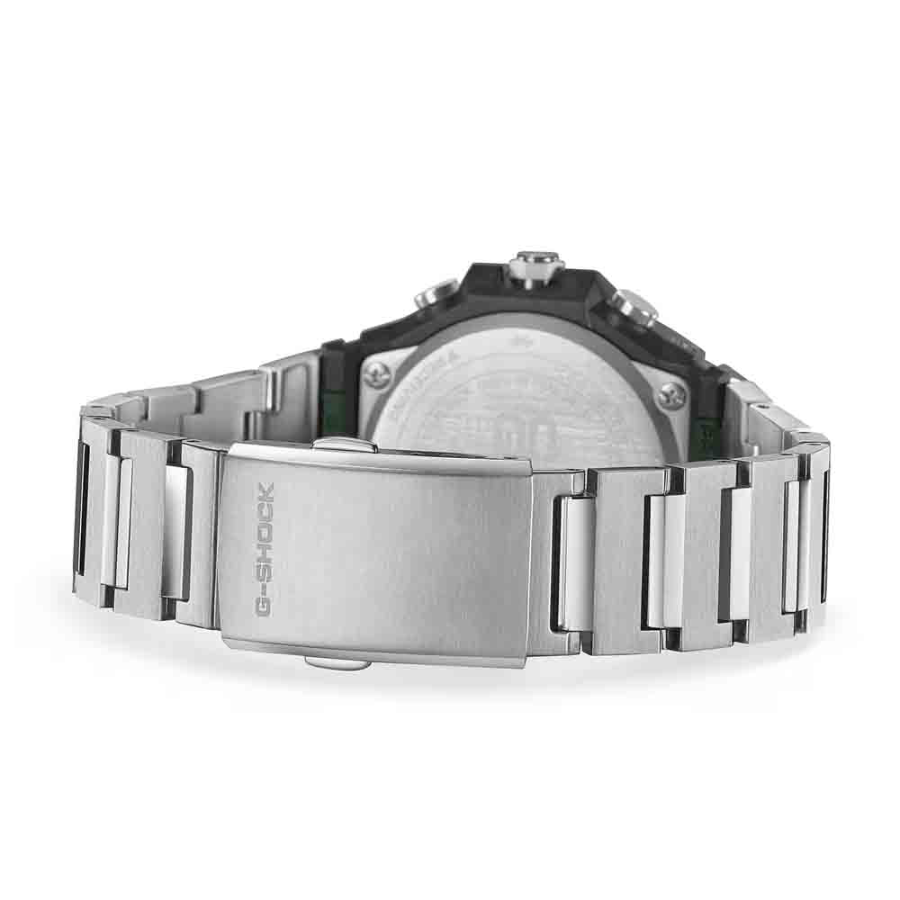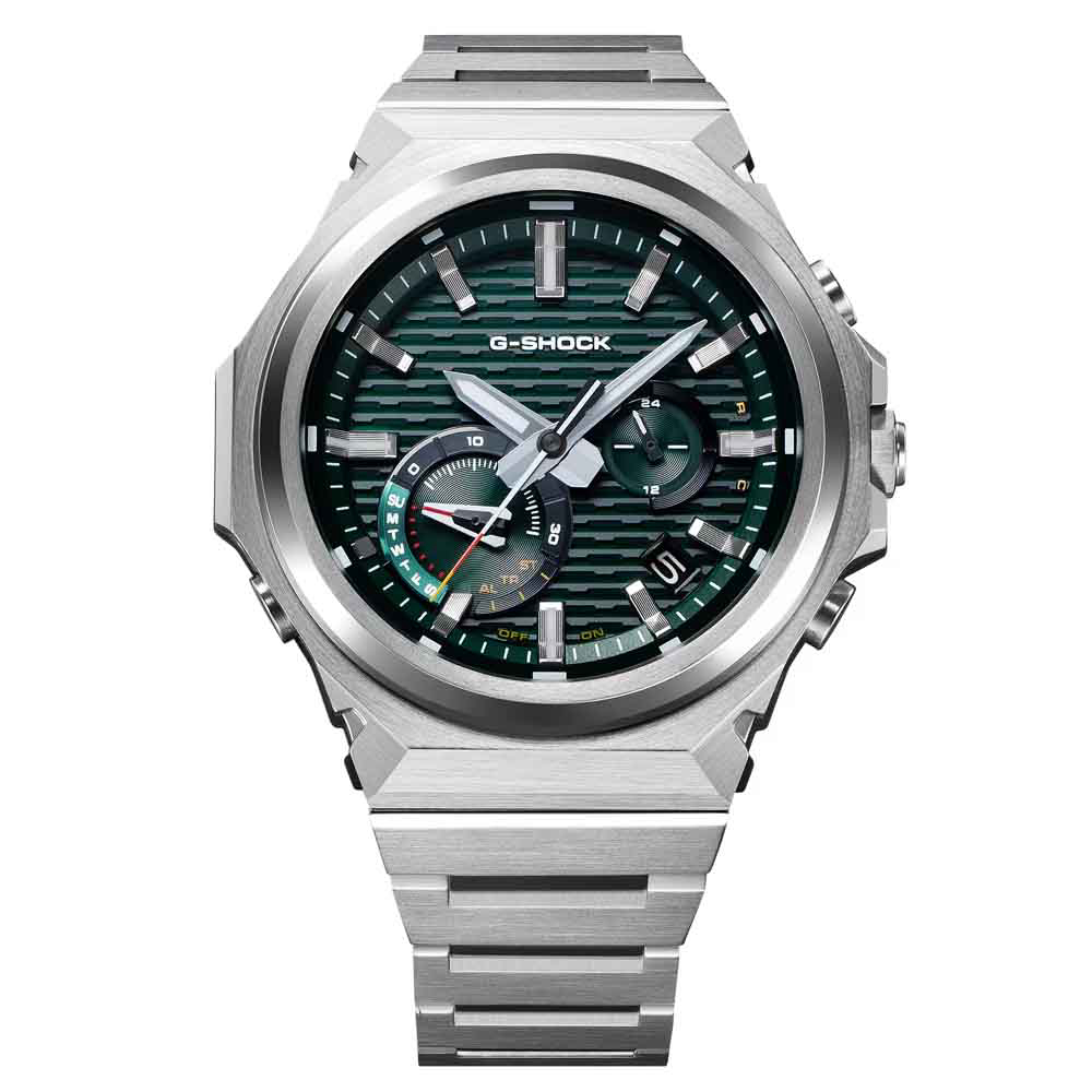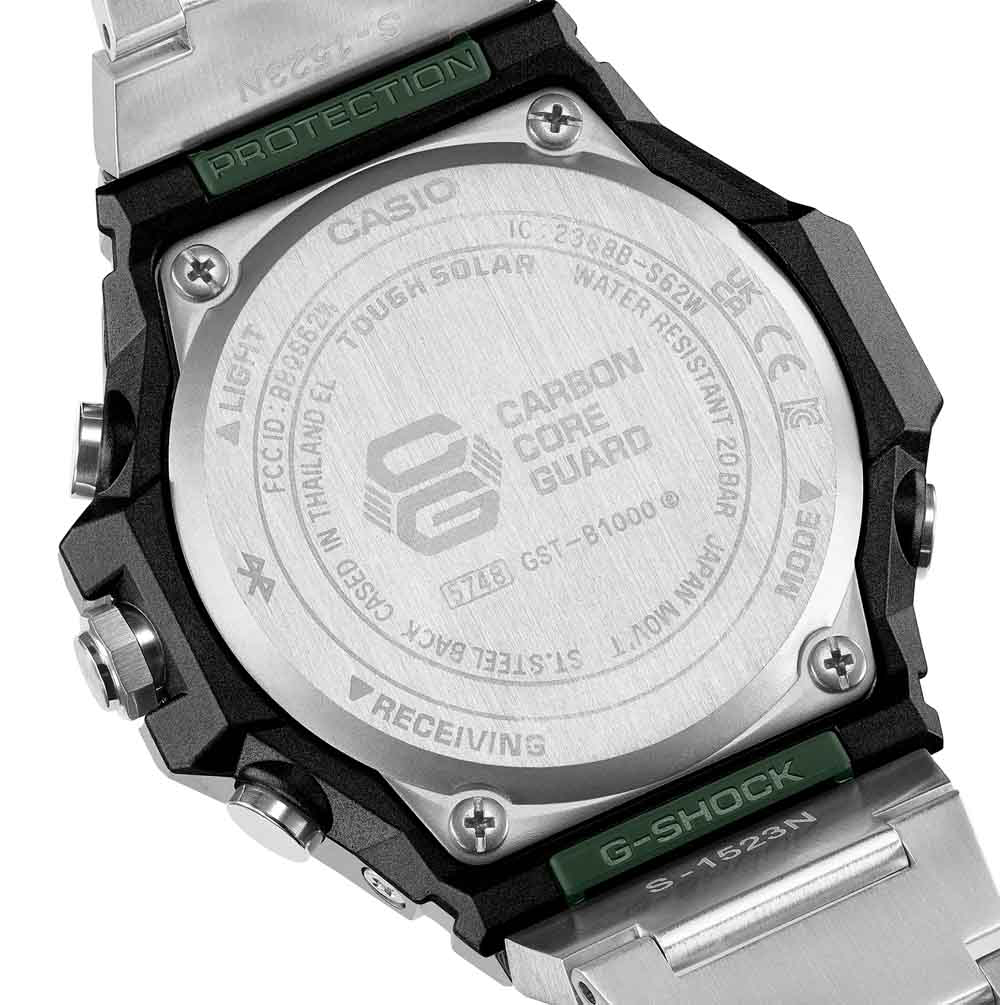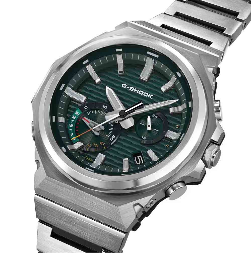 Čvrsta, inovativna, funkcionalna ljepota — redizajnirana u oštrom, minimalističkom stilu. GST-B1000D nastavlja G-SHOCK baštinu čvrste konstrukcije i dizajna ukorijenjenog u funkcionalnoj ljepoti, rekonstruirajući tu baštinu kako bi se postigao uglađen, elegantan izraz. Okvir je bez logotipa za čist, moderan izgled, dok tri odvojene završne obrade — vertikalna tanka linija, kružna tanka linija i zrcalno poliranje — stvaraju bogatu i sofisticiranu teksturnu privlačnost koja se mijenja kako se svjetlost reflektira pod različitim kutovima. Remen od nehrđajućeg čelika sa zrcalnom i tankom završnom obradom uparen je s trostrukom kopčom, također izrađenom od masivnog nehrđajućeg čelika. Ovaj oštar, ravan dizajn s lakoćom vas vodi od poslovnih sastanaka do ležernih okruženja i aktivnosti na otvorenom.