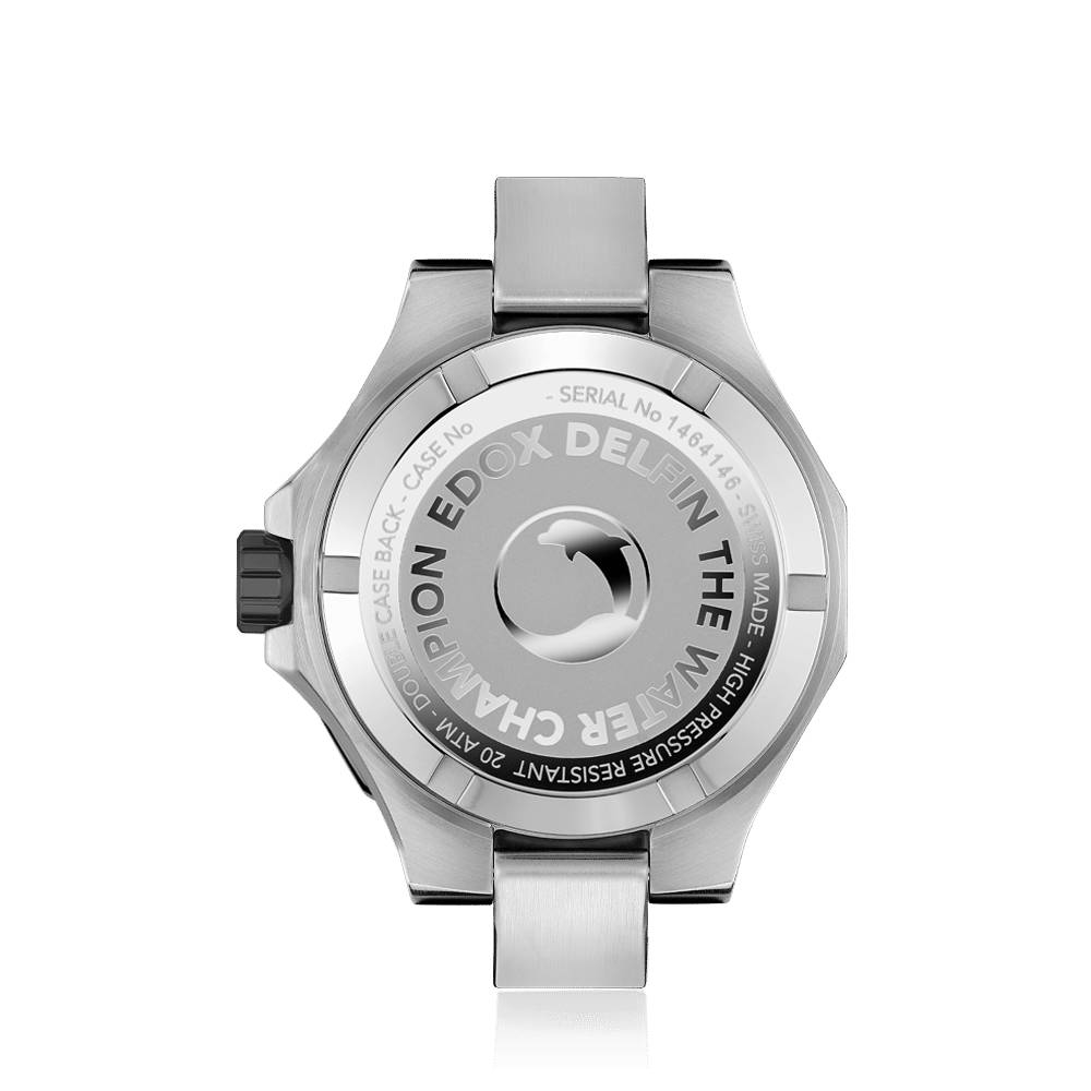 Muški sat EDOX DELFIN 88008 3GCA BGO spoj je elegantnog dizajna i švicarskog inženjeringa s praktičnim funkcijama za svakodnevno nošenje i sport. Pokreće ga švicarski automatski mehanizam Caliber 88 (baziran na Sellita SW220-1) s rezervom snage oko 38 sati, a sat prikazuje vrijeme, datum i dan u tjednu. Kućište promjera 43 mm od nehrđajućeg čelika štiti izdržljivo safirno staklo i vodootporan je do 200 m / 20 ATM, što ga čini pogodnim i za plivanje ili rekreativno ronjenje. Sivi brojčanik s luminiscentnim kazaljkama i indeksima uz crni gumeni remen dodaju sofisticiran, ali sportski karakter.