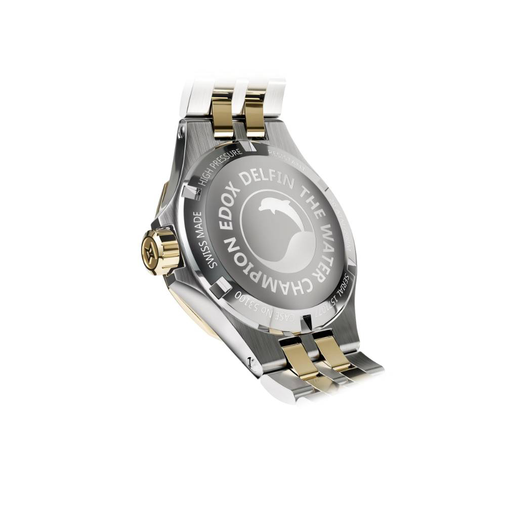 Ženski sat Edox Delfin Lady 53100 357JM NADND kombinira elegantan i luksuzan sportski izgled s pouzdanom švicarskom preciznošću. Opremljen je švicarskim kvarcnim mehanizmom Ronda 515 s funkcijom datum na poziciji 3 sata, dok safirno staklo štiti prekrasan brojčanik ukrašen pravim dijamantima za dodatni sjaj. Kućište promjera 33 mm izrađeno je od nehrđajućeg čelika s PVD-premazom, a model ima vodootpornost do 200 m / 20 ATM, što ga čini pogodnim za plivanje i rekreativno ronjenje. Sat dolazi s dvobojnom čeličnom narukvicom (srebro-zlato) i Super-LumiNova luminiscencijom kazaljki za bolju čitljivost u mraku.