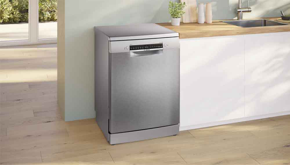 Samostojeća perilica posuđa BOSCH SMS4HTI16E dolazi s ExtraDry opcijom koja temeljito osuši posuđe zahvaljujući višim temperaturama tijekom ispiranja i duljoj fazi sušenja. Košare VarioFlex imaju poboljšane mogućnosti prilagodbe uz dodatan prostor na svim razinama. Uz Home Connect aplikaciju upravljajte perilicom posuđa s bilo kojeg mjesta. DosageAssist osigurava optimalne rezultate čišćenja i tiše pranje. Deterdžent kaplje iz pretinca za sredstvo za pranje na posebni pladanj na gornjoj košari gdje se do kraja otapa.