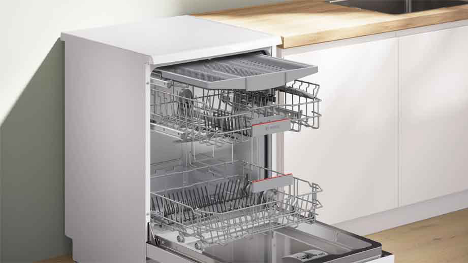 Samostojeća perilica posuđa BOSCH SMS4HVW14E dolazi s ExtraDry opcijom koja temeljito osuši posuđe zahvaljujući višim temperaturama tijekom ispiranja i duljoj fazi sušenja. Košare VarioFlex i VarioDrawer imaju poboljšane mogućnosti prilagodbe uz dodatan prostor na svim razinama. Uz Home Connect aplikaciju upravljajte perilicom posuđa s bilo kojeg mjesta. DosageAssist osigurava optimalne rezultate čišćenja i tiše pranje. Deterdžent kaplje iz pretinca za sredstvo za pranje na posebni pladanj na gornjoj košari gdje se do kraja otapa.