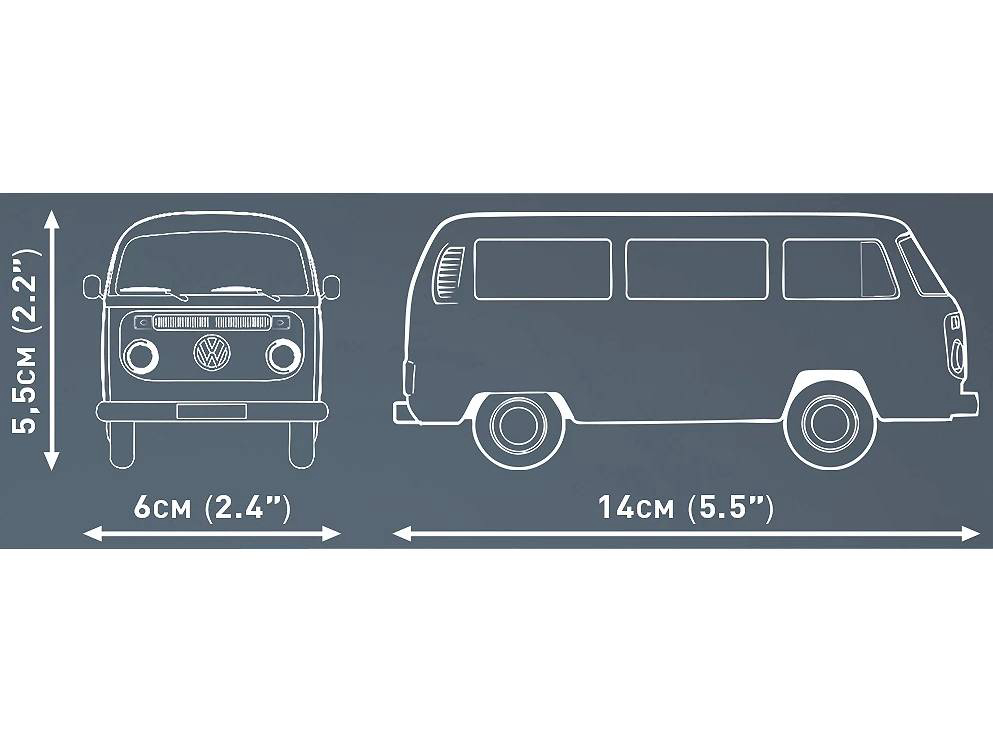 Sada imate priliku stvoriti vlastitu verziju legendarnog Volkswagena T2b, koji je postao ikona automobilizma i simbol ludih putovanja, avantura i slobode duha! Model T2, poznat kao "Bay Window" (proizveden sredinom 1960-ih i 1970-ih), bio je nastavak uspjeha modela T1 i odlikovao se modernim izgledom s karakterističnim, zaobljenim vjetrobranskim staklom. Tijekom godina Volkswagen Bus stekao je status kultnog vozila, pojavljujući se u bezbroj filmova, glazbenih spotova i reklama. Danas je jedan od najprepoznatljivijih automobila na tržištu, a njegov klasični dizajn i dalje privlači kolekcionare i ljubitelje automobilizma. Sastoji se od 145 precizno usklađenih dijelova. Set se preporučuje osobama starijim od 7 godina. Dimenzije: 14 cm x 6.5 x 6 cm. COBI kocke kompatibilne s LEGO kockama.
