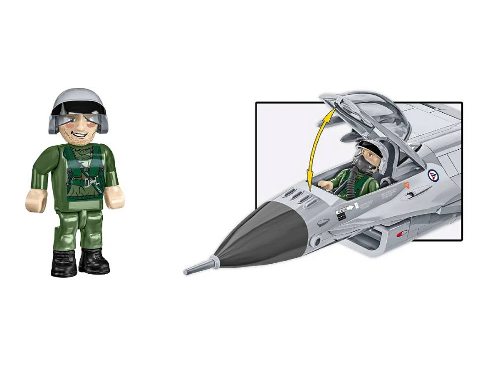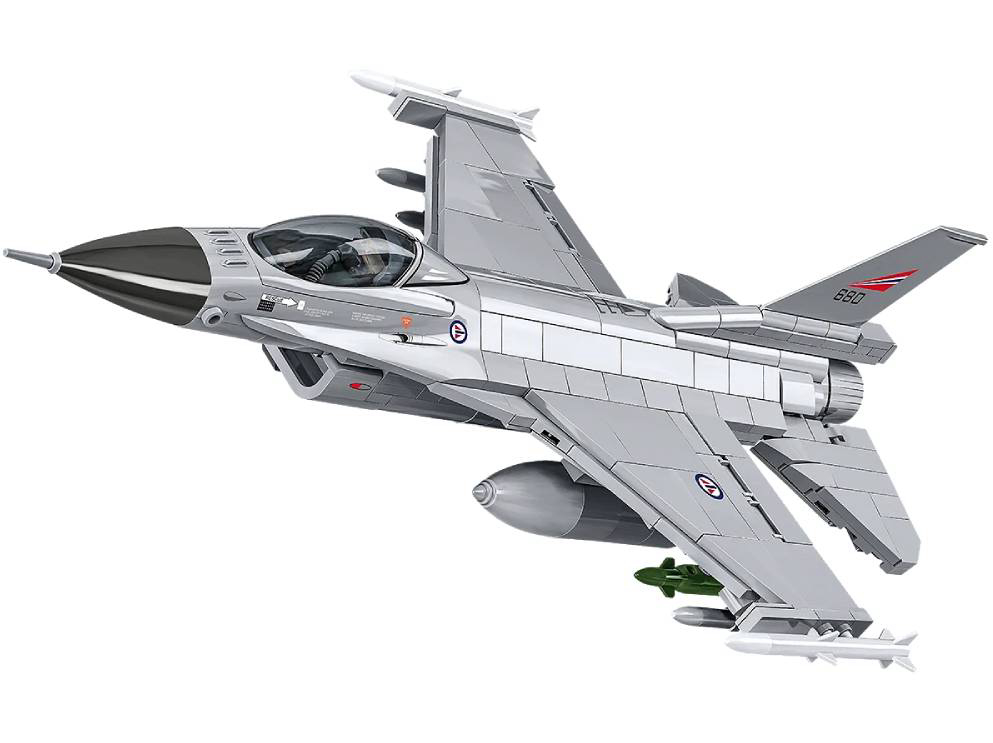 Izgradite jednog od najpoznatijih borbenih zrakoplova 20. i 21. stoljeća - F-16 Fighting Falcon u jedinstvenoj verziji Kraljevskog norveškog ratnog zrakoplovstva. 21. srpnja 1975. Norveška je, zajedno s Belgijom, Nizozemskom i Danskom, potpisala sporazum o kupnji modernih višenamjenskih borbenih zrakoplova. Izbor je pao na američki projekt F-16 Fighting Falcon koji je revolucionirao moderno zrakoplovstvo. Tijekom više od četiri desetljeća službe, norveški F-16 sudjelovali su u mnogim ključnim međunarodnim operacijama pod pokroviteljstvom NATO-a, uključujući Kosovo, Afganistan, Libiju i patroliranje zračnim prostorom baltičkih država kao dio NATO-ove Baltičke zračne policije. Nakon 42 godine službe, posljednji operativni let norveškog F-16 održan je 6. siječnja 2022. Iako su zrakoplovi povučeni iz aktivne službe, mnogi su ostali operativni i pronašli drugi život - neki su završili u Rumunjskoj, drugi su prodani tvrtkama za obuku. Set se sastoji od 495 dijelova te uključuje jednu figuricu pilota. Ovaj set namijenjen je osobama starijim od 8 godina. Dimenzije: 31.5 cm x 23 cm x 11.5 cm. COBI kocke kompatibilne s LEGO kockama.