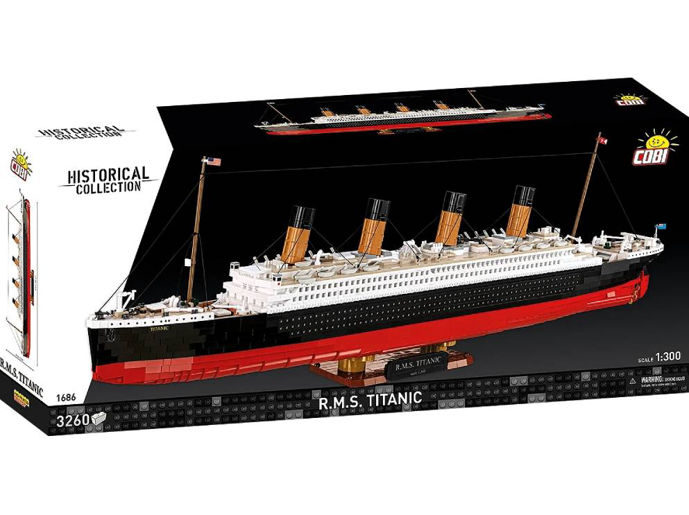 Izgradite najveći model COBI Titanica i otkrijte povijest legendarnog prekooceanskog broda u jedinstvenom mjerilu! Izgradite jedinstveni model prekooceanskog broda koji se sudario sa santom leda tijekom svog prvog putovanja u noći s 14. na 15. travnja 1912. godine. Izgradnja modela R.M.S. Titanica izazovan je projekt za sve koji vole povijest i pomorske legende. Savršen je za izlaganje na polici, stolu ili vitrini gdje će očarati ljubitelje povijesti i oduševiti svojom veličinom! Sastoji se od 3260 visokokvalitetnih elemenata. Set se preporučuje osobama starijim od 11 godina. Dimenzije: 91 cm x 11 cm x 24 cm, visina s bazom 27 cm. COBI kocke kompatibilne s LEGO kockama.
